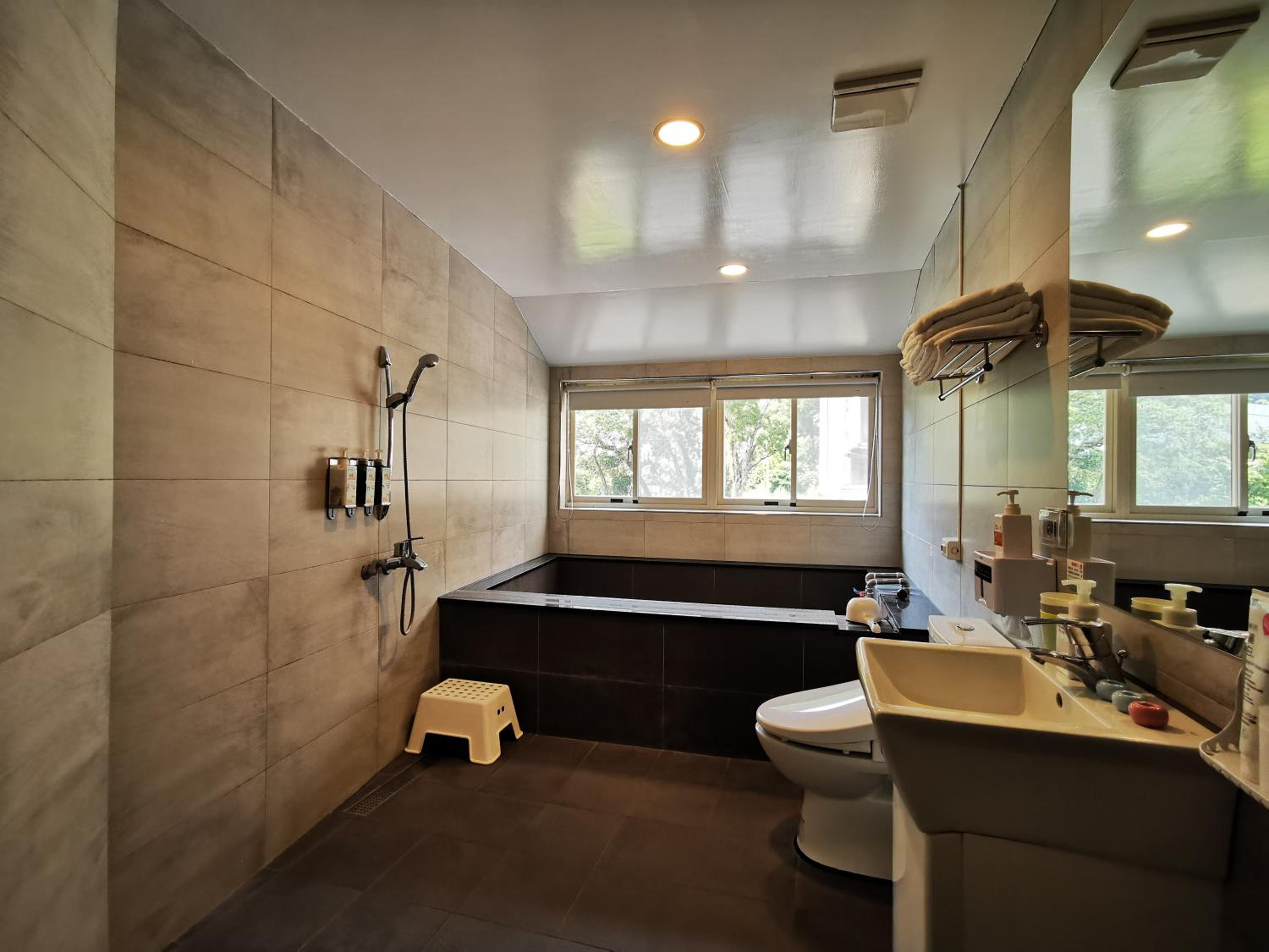 溫泉很爽還有免治馬桶 後面可以看得到山很漂亮