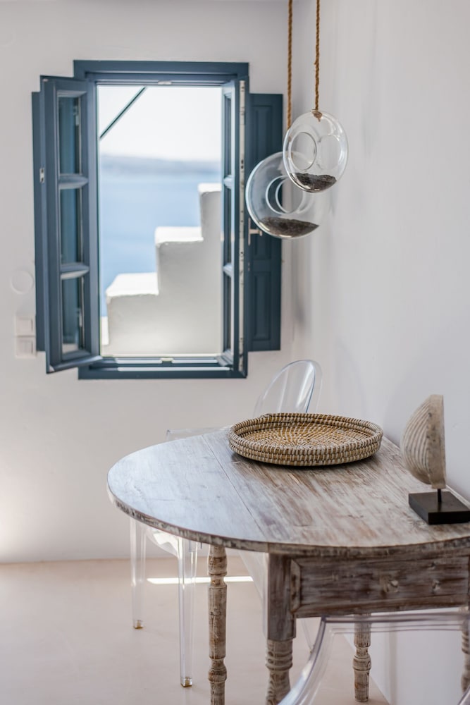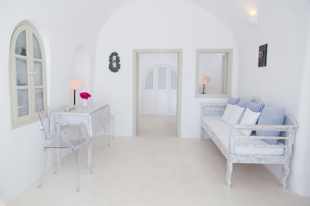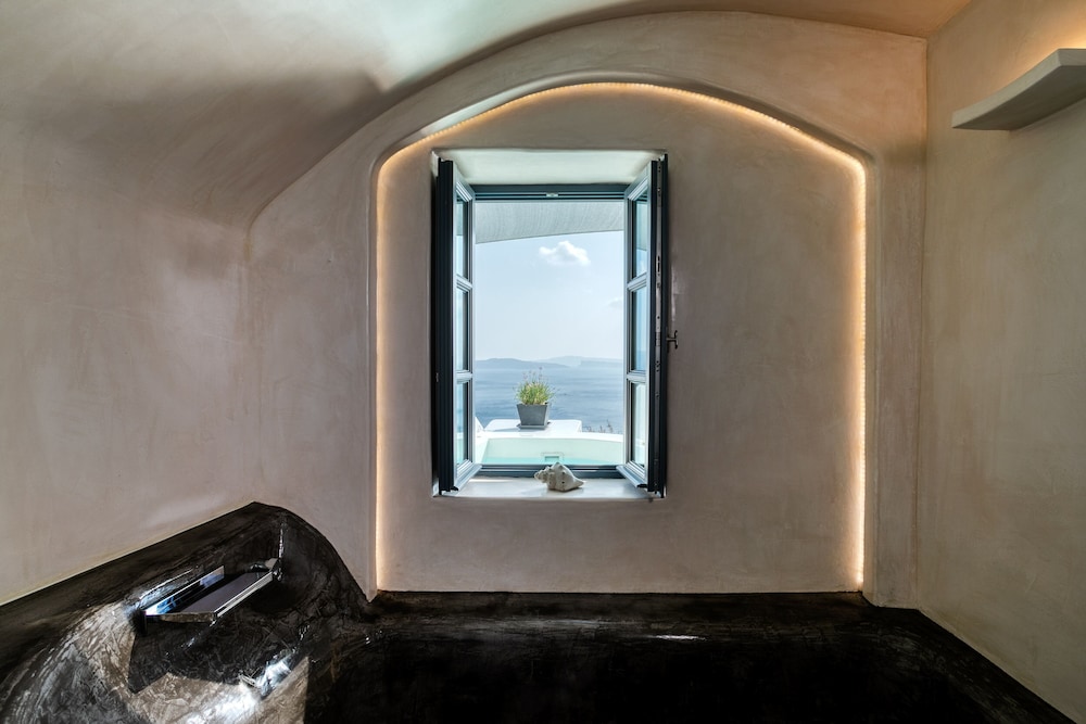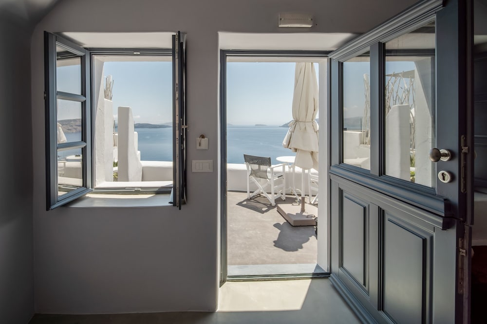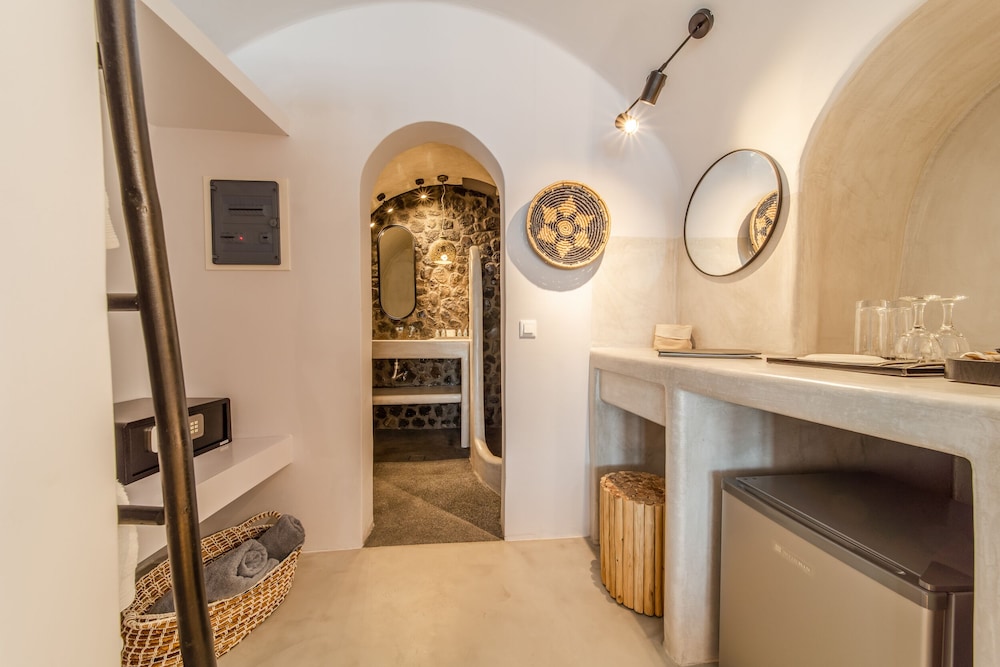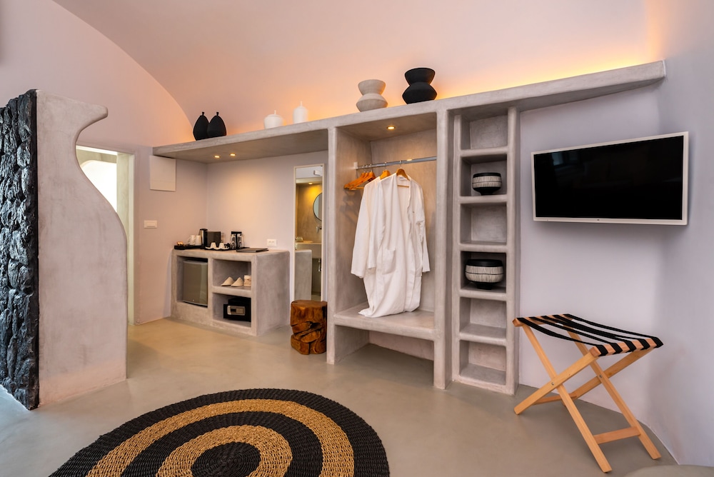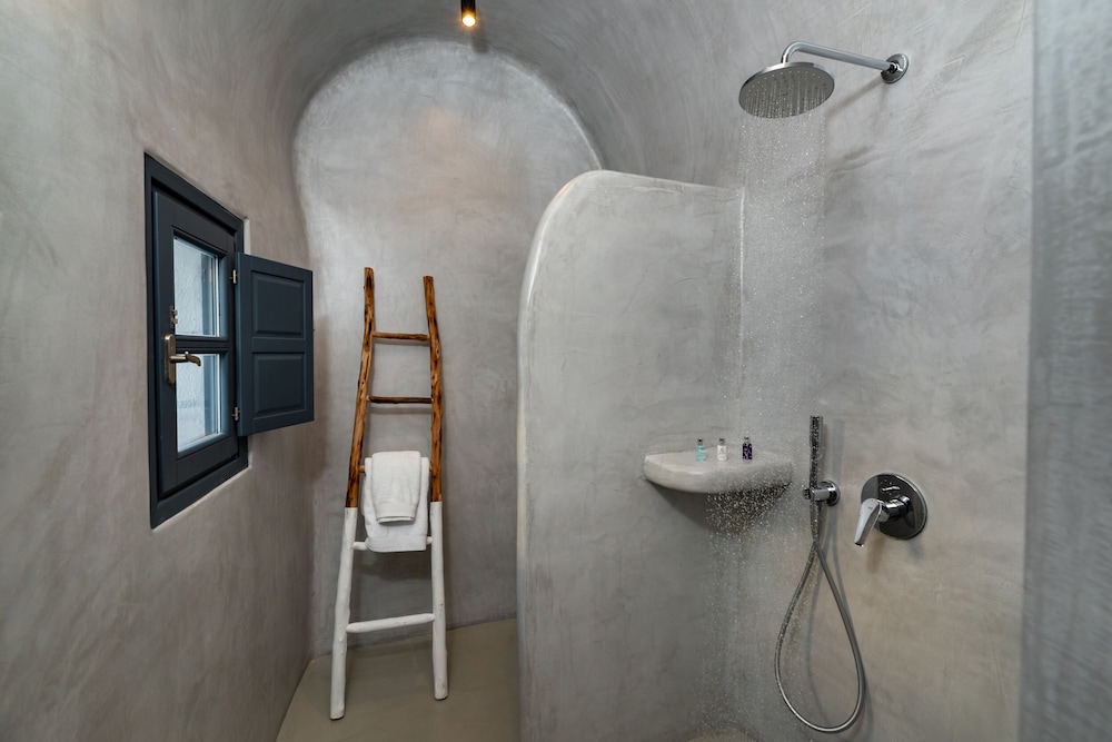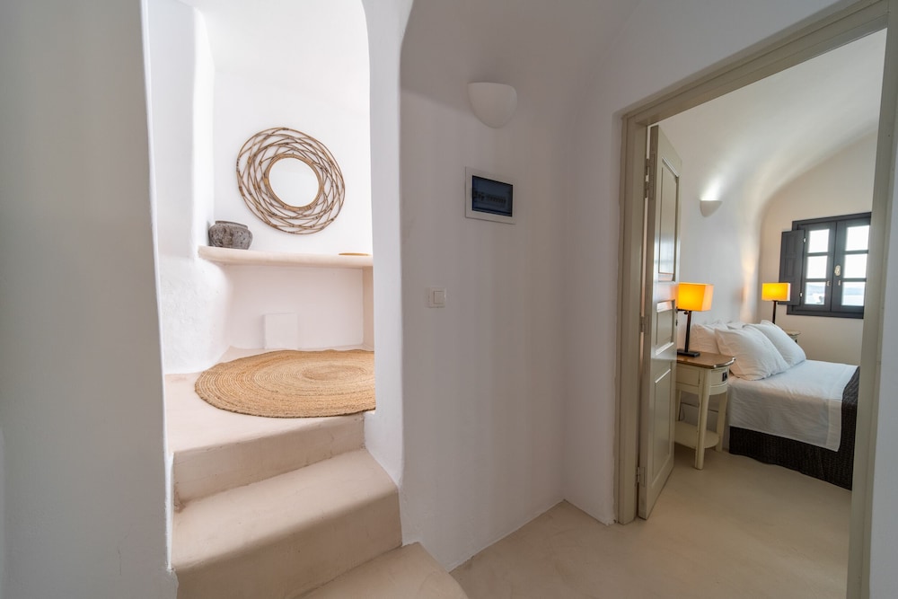 We booked the Signature Cave Suite which had an expansive covered sea front balcony with loungers and table( for the exquisite breakfast custom cooked.) The room had a sitting area and master BR deeper in the cave. The polished concrete walls and modern decor made for a unique Santorini/Oai experience. The service was impeccable and we greatly enjoyed the amenities and pool. The location along the Oai walkway is less congested and conveniently near the taxi drop off area. What is equally impressive is the porter who carried our 2 50 lb. bags down 238 feet of descent to our hotel location!! I have to admit, I felt ashamed for having so much weight😬 That said, this location, frankly Oai is not for the elderly-so many steep cobble stone steps, AND cruise ship crowds which pack the beautiful town. But also wish to give a shout out to Panos at the Mini Mart at the top of the stairs-very kind, helpful and was a daily welcome when we went to restock water and wine. For all our Greece travels, Oai and Nostos Apartments has been our favorite!! The Fira to Oai hike will be in our memories forever! And take a day or sunset boat cruise-islands are best seen from the water💕