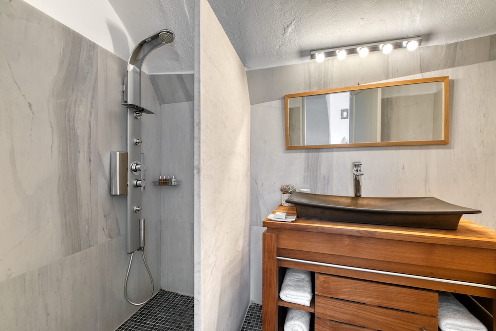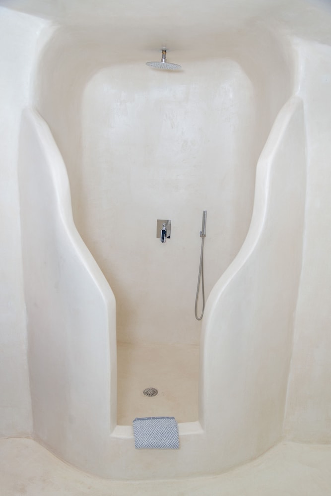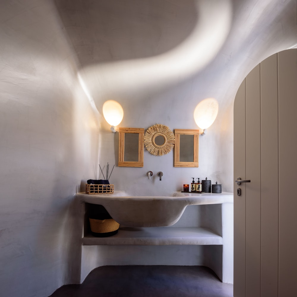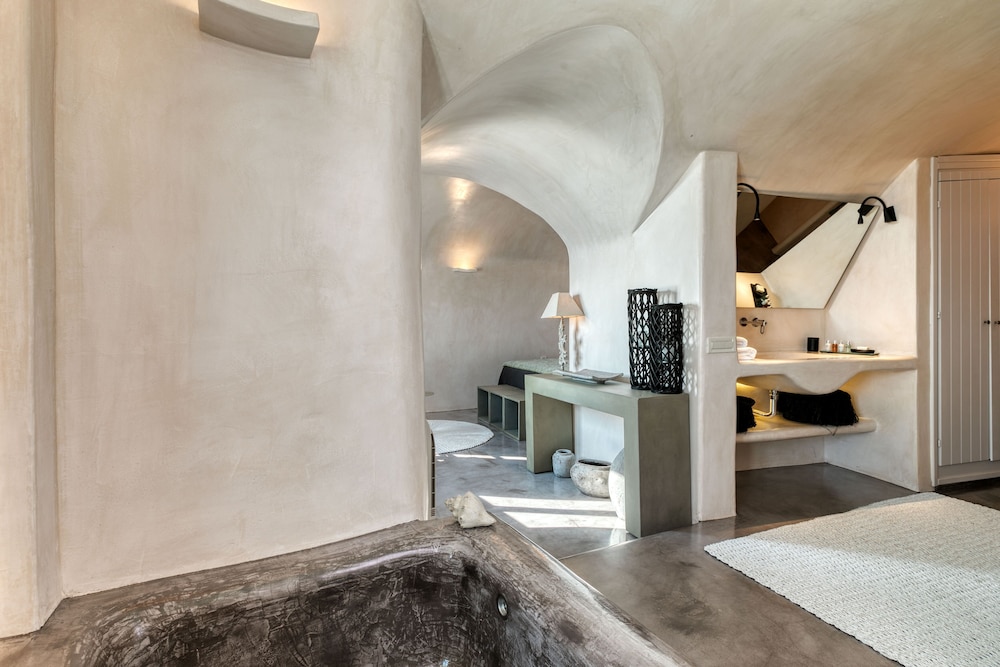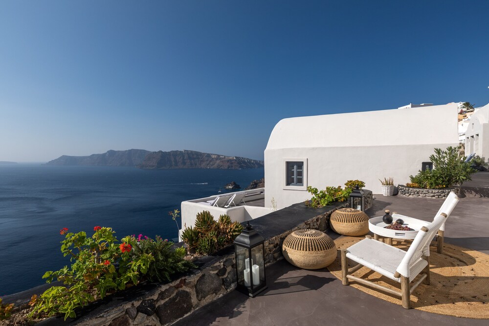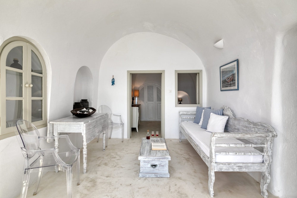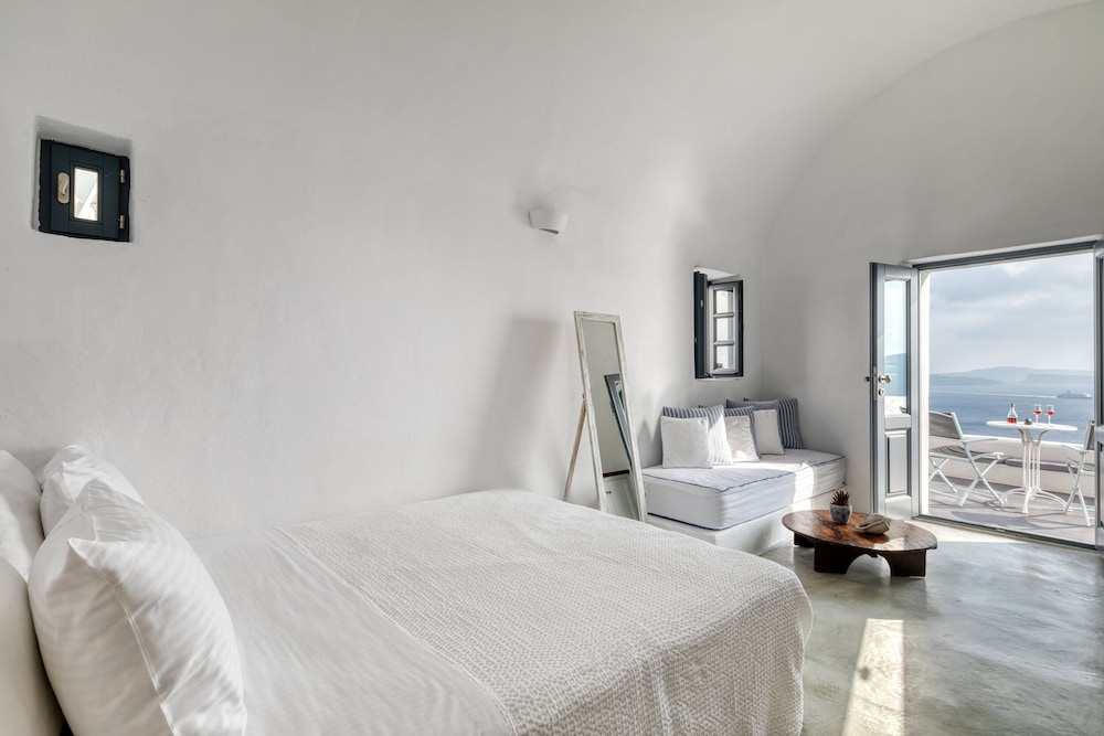 We booked the Signature Cave Suite which had an expansive covered sea front balcony with loungers and table( for the exquisite breakfast custom cooked.) The room had a sitting area and master BR deeper in the cave. The polished concrete walls and modern decor made for a unique Santorini/Oai experience. The service was impeccable and we greatly enjoyed the amenities and pool. The location along the Oai walkway is less congested and conveniently near the taxi drop off area. What is equally impressive is the porter who carried our 2 50 lb. bags down 238 feet of descent to our hotel location!! I have to admit, I felt ashamed for having so much weight😬 That said, this location, frankly Oai is not for the elderly-so many steep cobble stone steps, AND cruise ship crowds which pack the beautiful town. But also wish to give a shout out to Panos at the Mini Mart at the top of the stairs-very kind, helpful and was a daily welcome when we went to restock water and wine. For all our Greece travels, Oai and Nostos Apartments has been our favorite!! The Fira to Oai hike will be in our memories forever! And take a day or sunset boat cruise-islands are best seen from the water💕