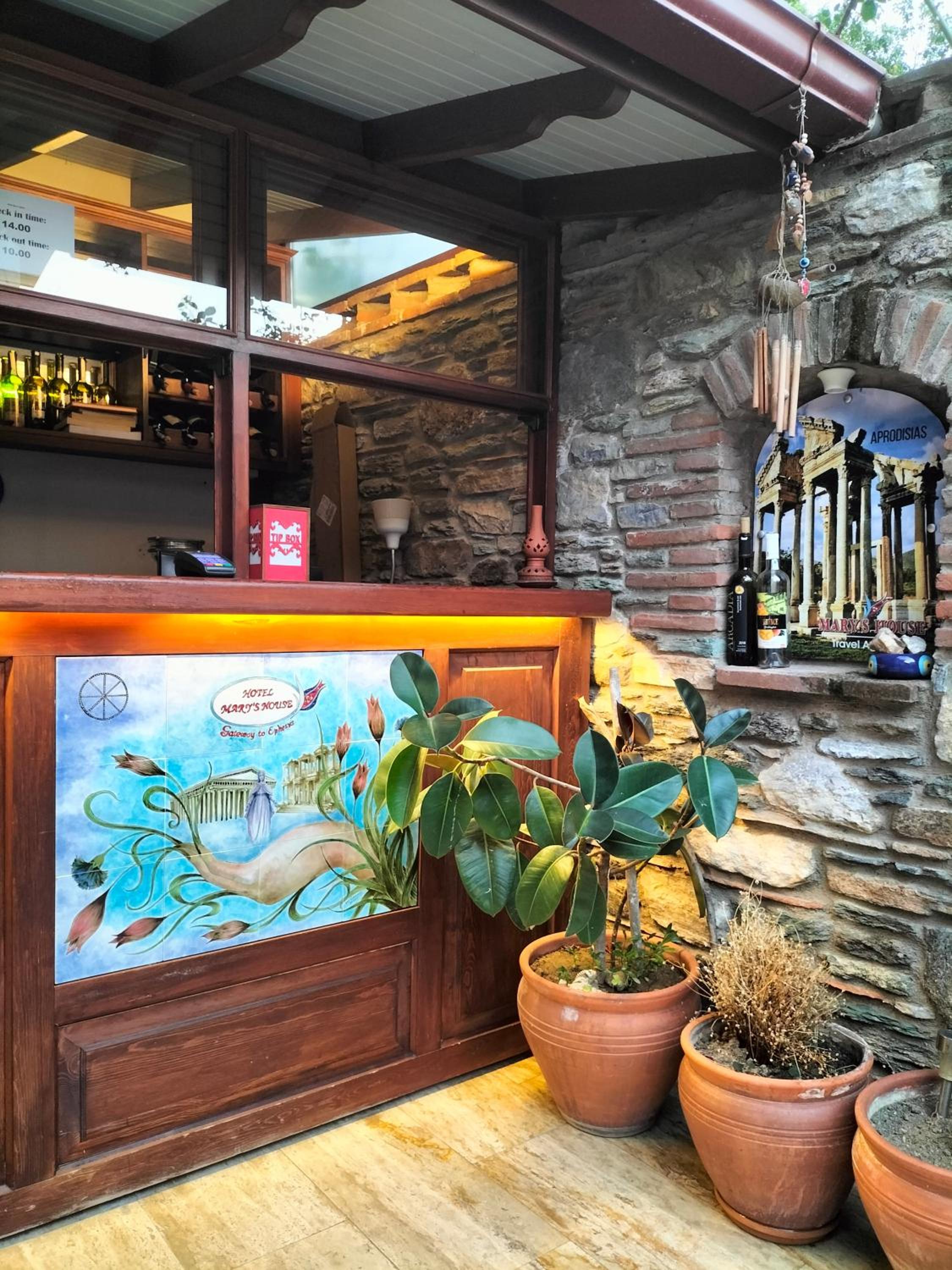 Mary's House, nestled in Selcuk, offers a tranquil retreat with its exquisite hand-made woodworks and picturesque views of the mountains and gardens from select rooms. The air-conditioned rooms boast private bathrooms and luxurious amenities like slippers and free toiletries.