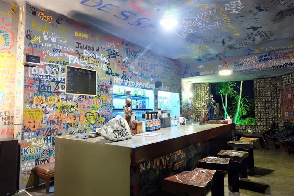 สถานที่เก่า ออกแบบให้คล้ายอยู่ในถ้ำ ห้องนั่งเล่นส่วนกลางจัดแบบสไตย์ยุโรป มีรูปเก่าๆติดตามผนัง