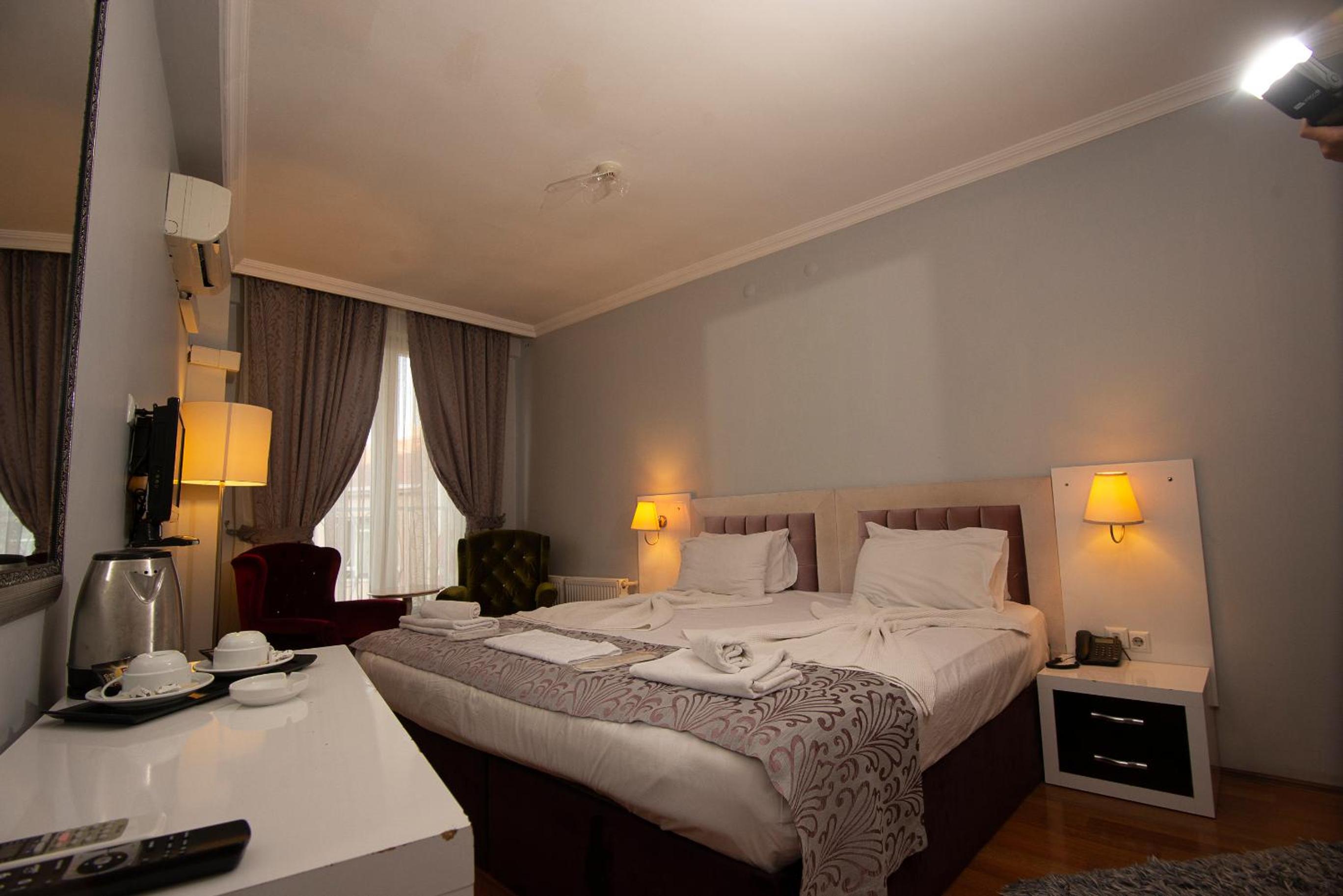 Biz otele gittiğimiz zaman otel tadilat aşamasındaydı ve heryer darmadağındı banyo ve tuvalet temizlenmemiş eski ve yıpranmış içler acısı bir vaziyetteydi kapılar çok eski ve sanki gece kulübünden sökülüp getirilmiş gibiydi kısacası bu rezalete tanıklık edip hemen başka bir otele rezervasyon yaptık ve burayı terk ettik burayı kimseye tavsiye etmiyorum.