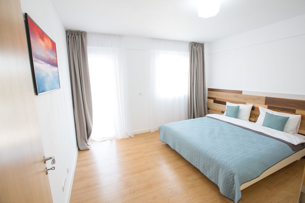 We were a group of 10 friends and booked two bedroom apartments. The apartments were good and the hotel is located at a good distance both from the city centre and the airport. The negative point was its service. We did not have kettle toaster coffeemaker or any device to make some boiled water. Also, our apartments got cleaned only once during our 5-days stay. In general, it was a good location to stay in in the town, but don't forget to "explicitly" ask the hotel staff to clean up your room, since this won't happen on the regular basis.