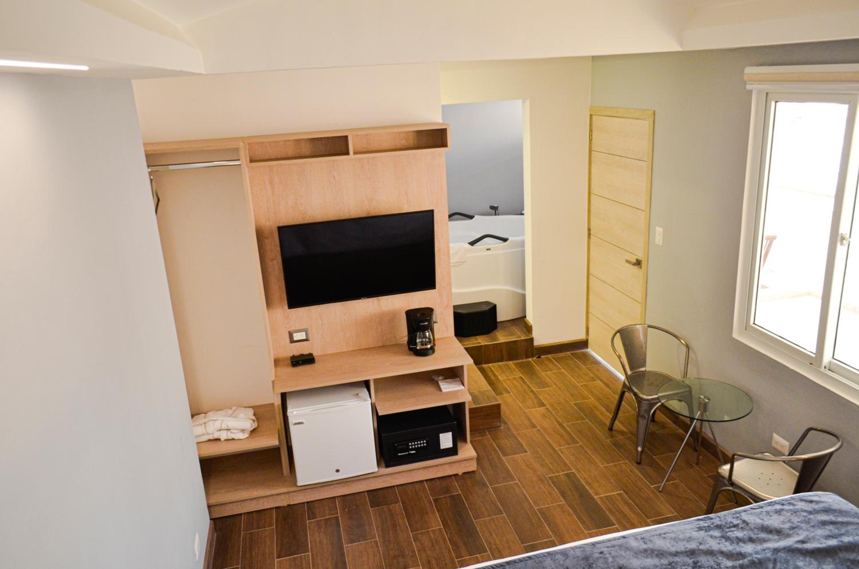 HABITACION ME ENCANTO, LE ELIMINARIA EL JACUZZI Y LE PONDRIA UNA MESA PARA COMER MEJOR, AUNQUE NO CAMBIARIA EL PEQUEÑO JARDIN DONDE COMIMOS. EN EL CUARTO QUE NOS TOCO PONDRIA ALGO PARA PONER LA ROPA. LA CAMA Y ALMOHADAS COMODISIMAS.