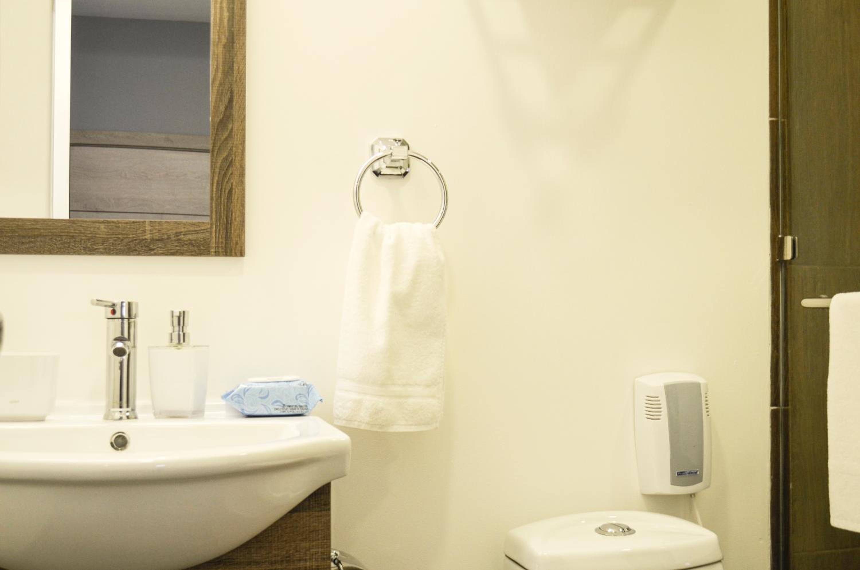 Tienen excelente ubicación y recepción 24 horas. Cuarto limpio y cómodo. Esta bien pero por el precio puede mejorar.