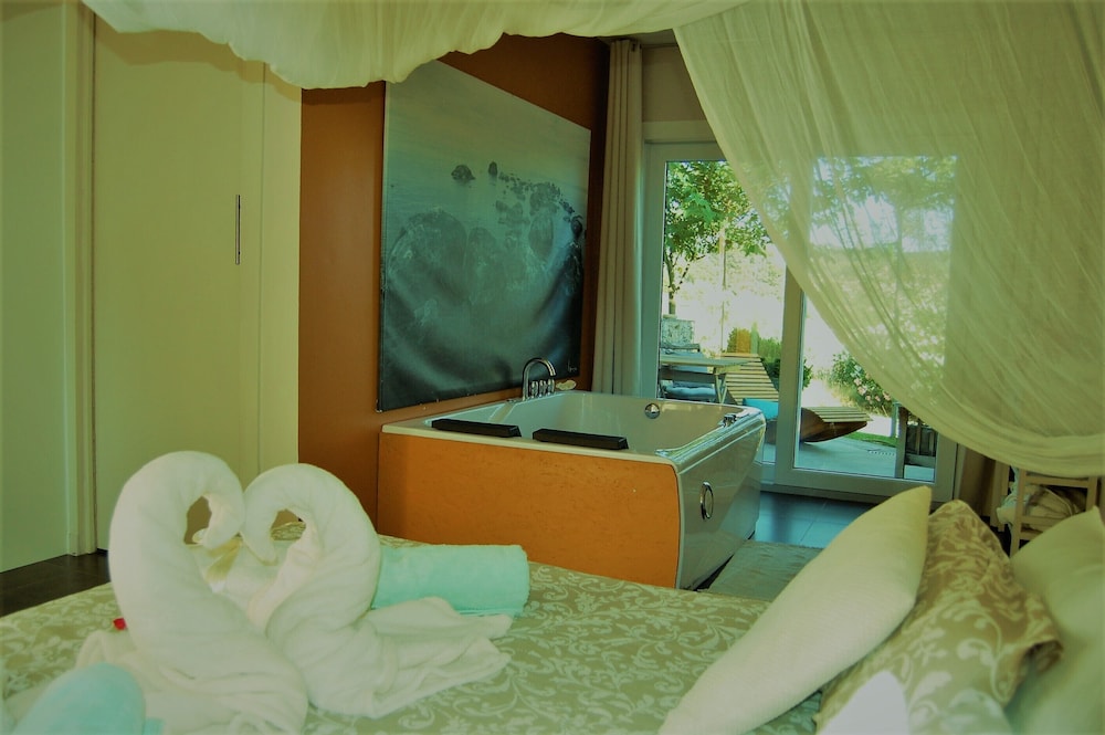Calidad precio caro. La cena romántica te la tienes que servir tú, te traen una caja con todos los platos y se van. 80€ por ese servicio me parece excesivo. La cama algo vieja y el baño con muy mal olor. El entorno muy bien y la piscina también.