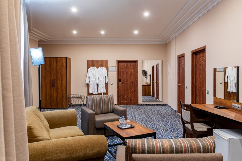 Забронировали двухкомнатный люкс , тк были втроём .в описании было написано подходит для 3 человек, в гостиной диванкровать.взяли ключ у хамоватой девицы .заселились . И тут выясняется, что диван в гостиной не раскладывается . Пришлось идти в номер с 3 кроватями. Девица хамила и ругалась. Номер был такой ушатаный, что мы побрезговали даже принять душ, хотя видно было, что его мыли . Белье было чистое и кровати удобные, но все остальное…