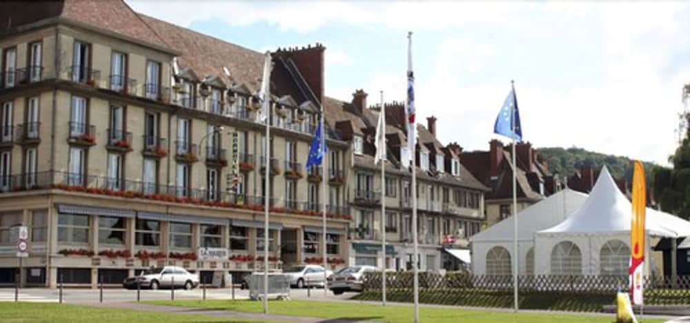 Views of Seine superb, easy access and convenient for a nice stopover before Dieppe ferry. Rooms need lots of tlc - eg a lightbulb missing, curtains needed rehanging, bath needs shower screen...shabby décor. Restaurant better - service, meal and wine good, which made up for the sad room albeit with a great view! Staff very pleasant.