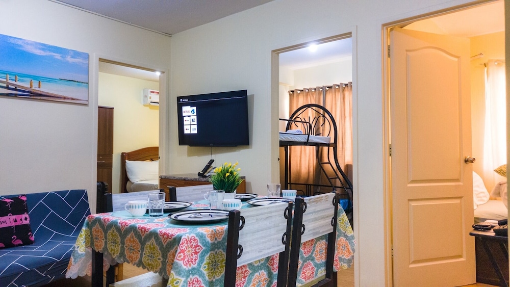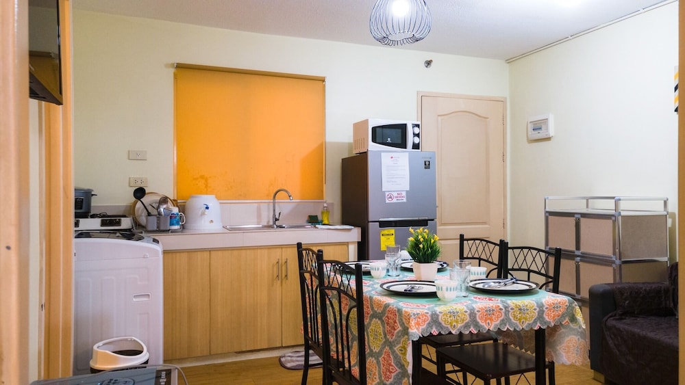 "Brand new" apartment complex, located pretty close to SM Seaside. So new complex, that they still are constructing new buildings. Nice security and guarded entrance and inside the different blocks. Makes you feel safe and secure. When we stayed here, out of season, not so many visitors made it quietly and comfortable. Our appartment allreay got some damages and remarks, telling that previous visitors dont act like visitors, show no respect to others property. From previous experiences I always take pictures upon arrival, together with the one opening the apartment, to document what's allready damaged before us, so we dont get in any trouble upon checking out. The appartment was spacious, and was a great and affordable for our family of 5. Full kitchen accessories for making our own food. New and nice wasingmashine also available. Great swimmingpool with a separated one for the smallest kids.