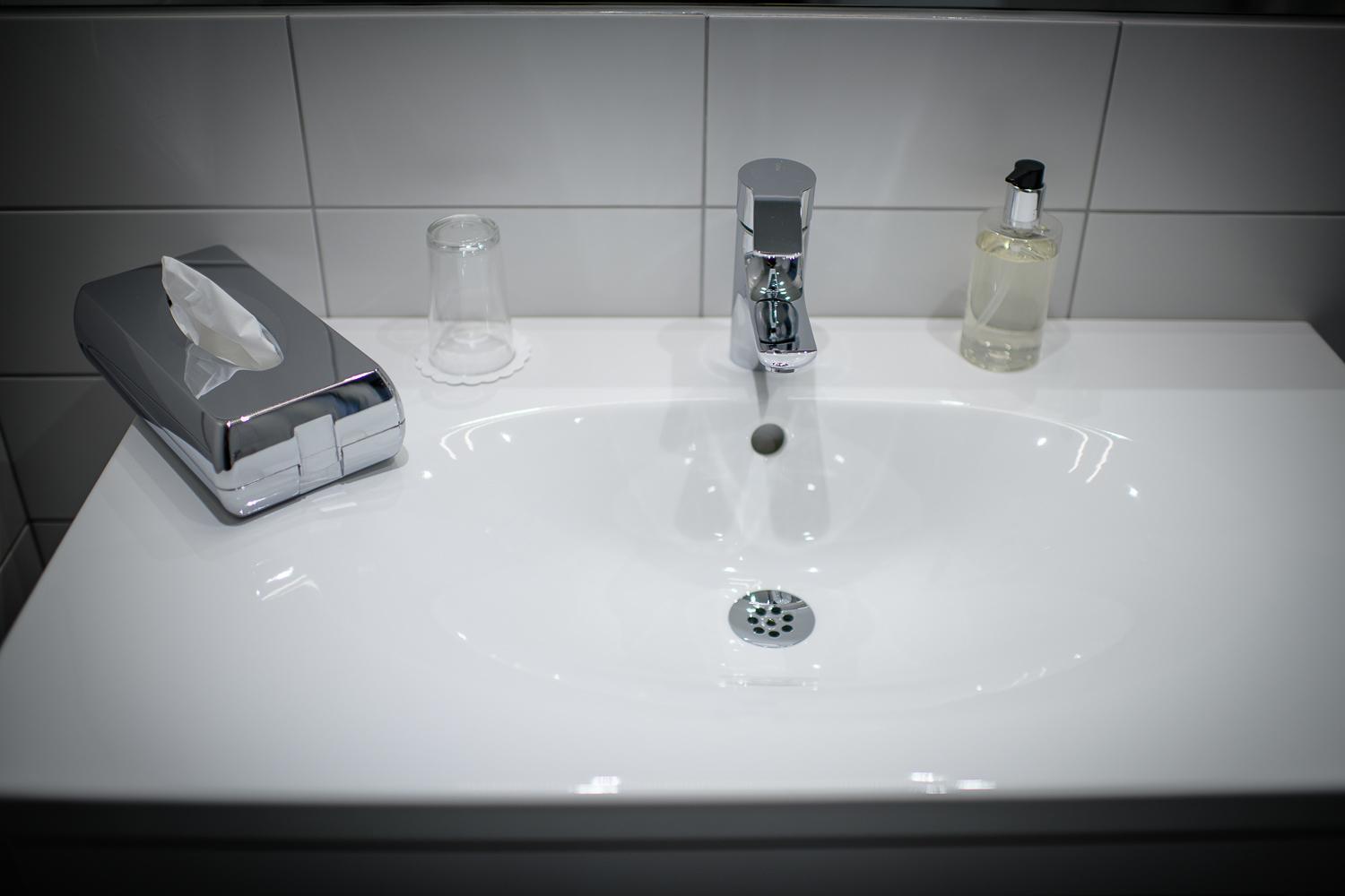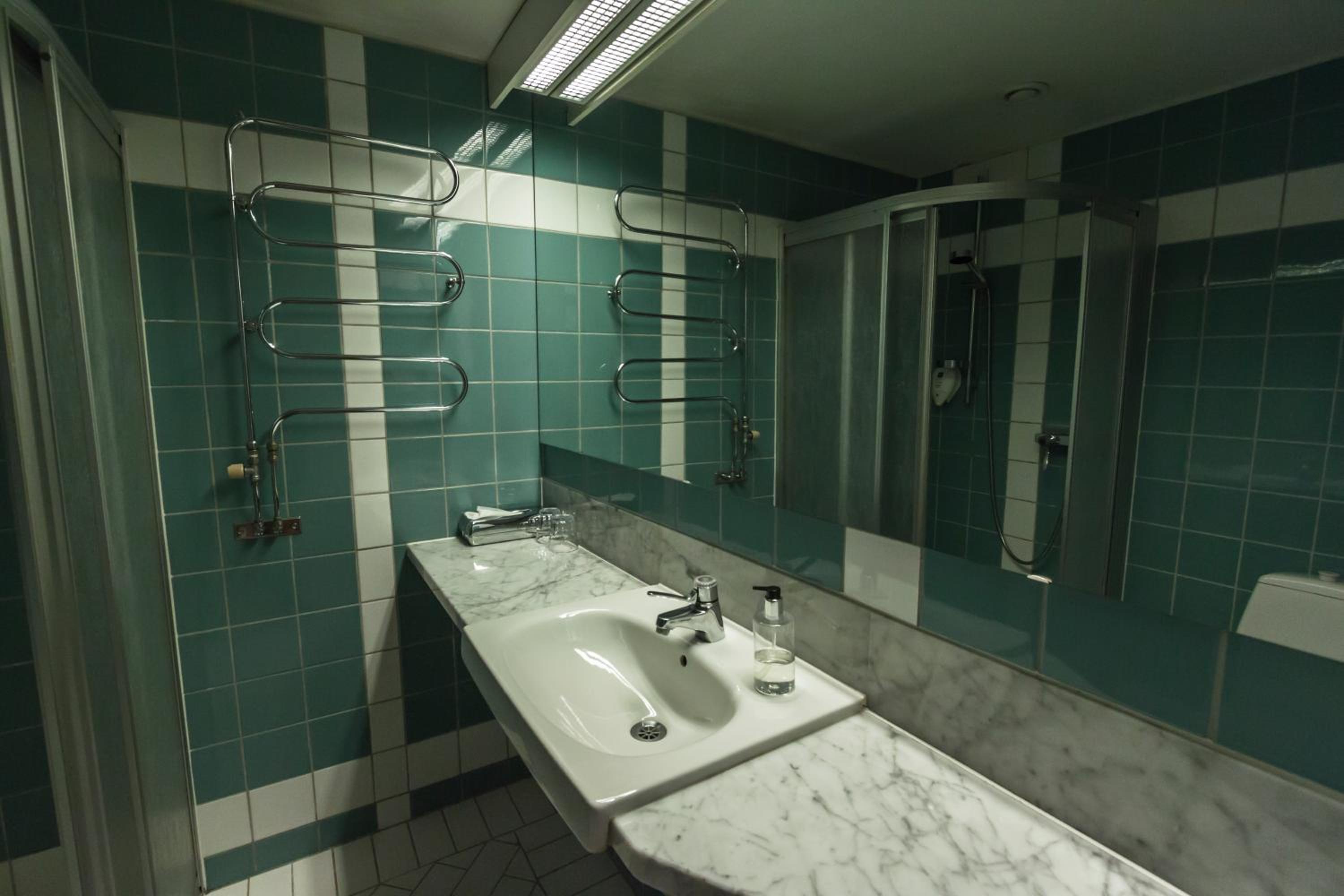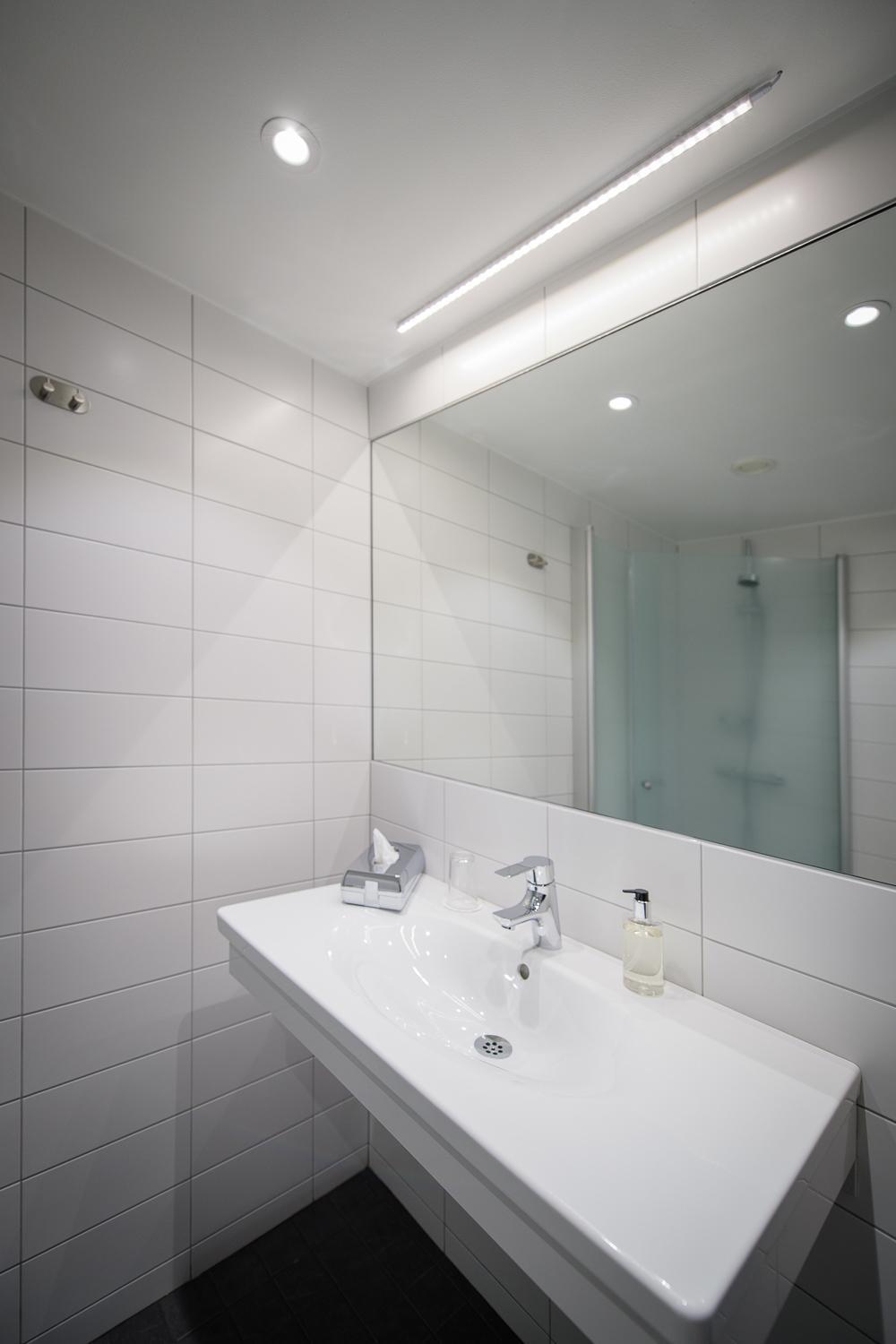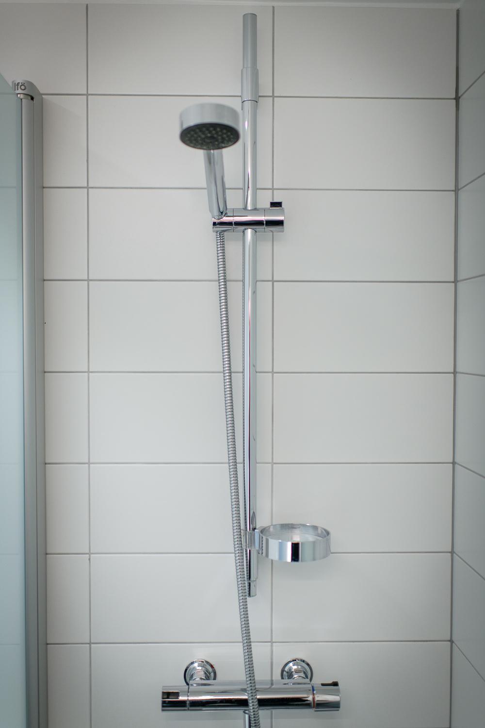 Duschblandaren sprutade åt alla håll, handfatets blandare sprutade också åt alla håll. Fönstret gick inte att öppna, väldigt varmt på rummet.