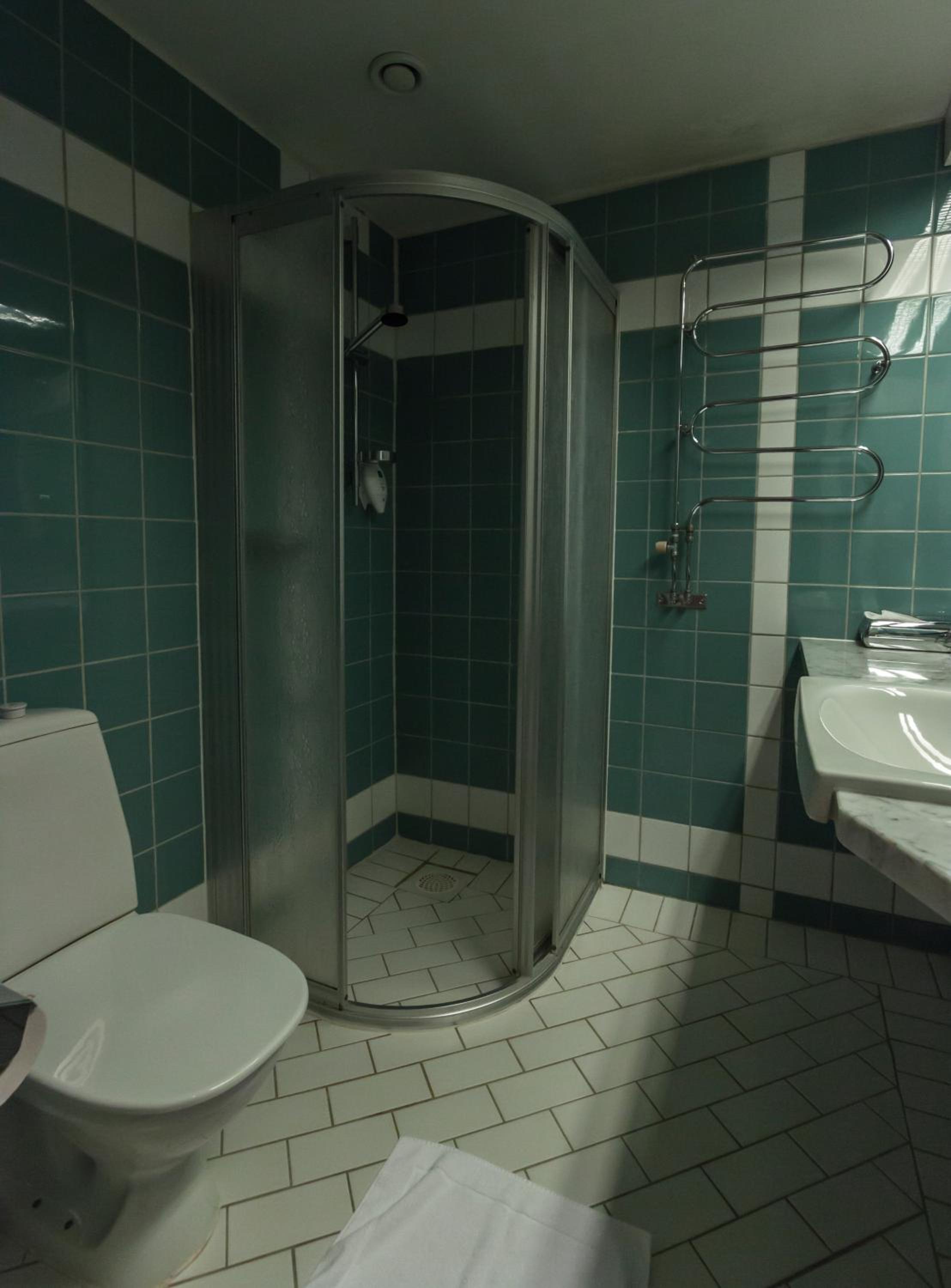 Extremt dålig frukost. Väldigt slitet rum med en kreativ lösning på att duschkabinen är trasig. Oengagerad personal över lag.