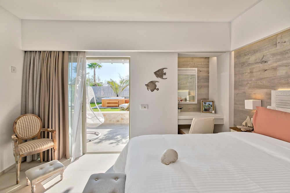 Book a luxurious seaside getaway at White Pearls Luxury Suites - Adults Only in Kos, just minutes away from popular attractions and the beach.