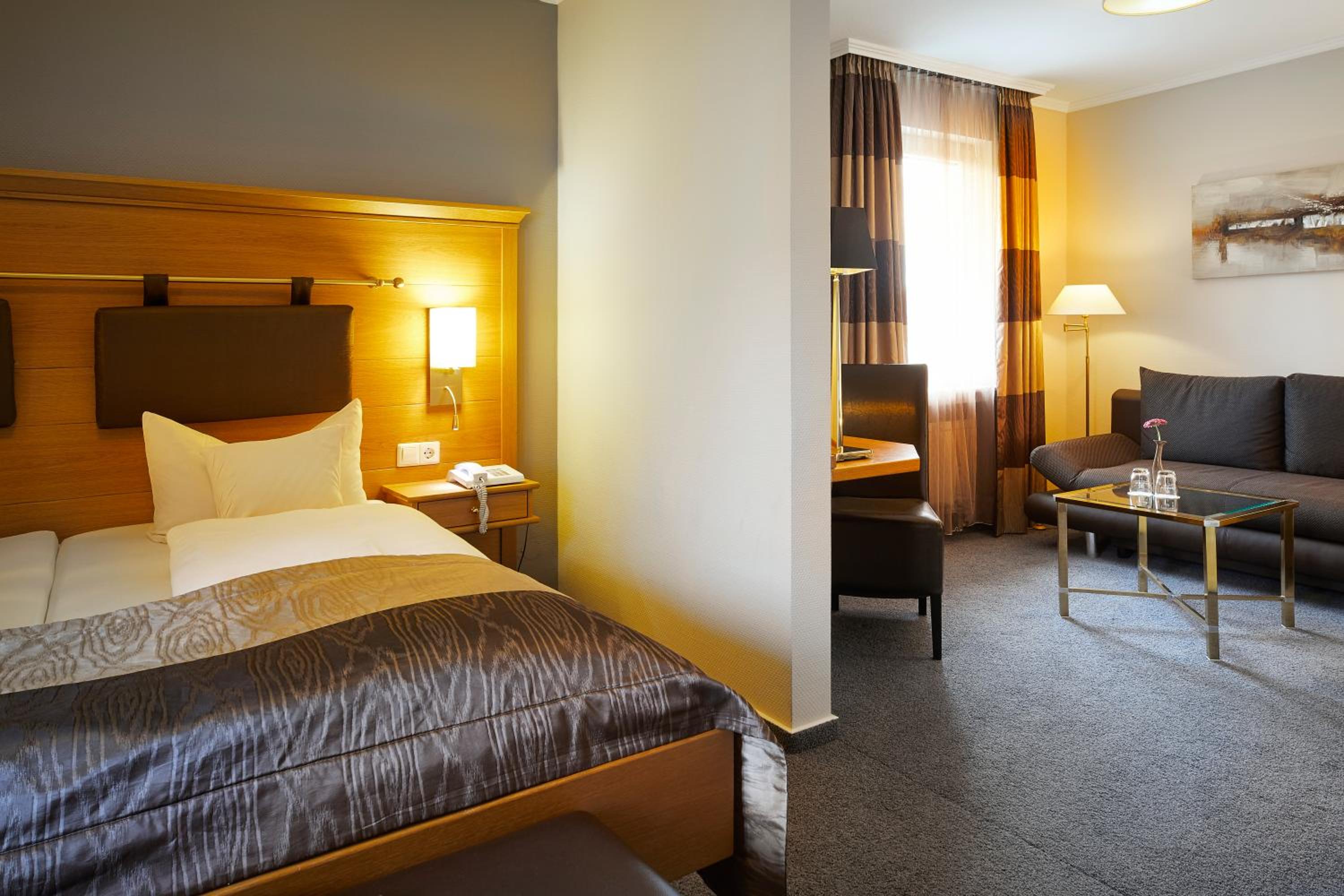 Start your day with a delicious breakfast buffet and savor regional specialties or multi-course meals at the elegant hotel restaurant. For a more casual setting, head to the Kurven: Bar or dine al fresco on the terrace.