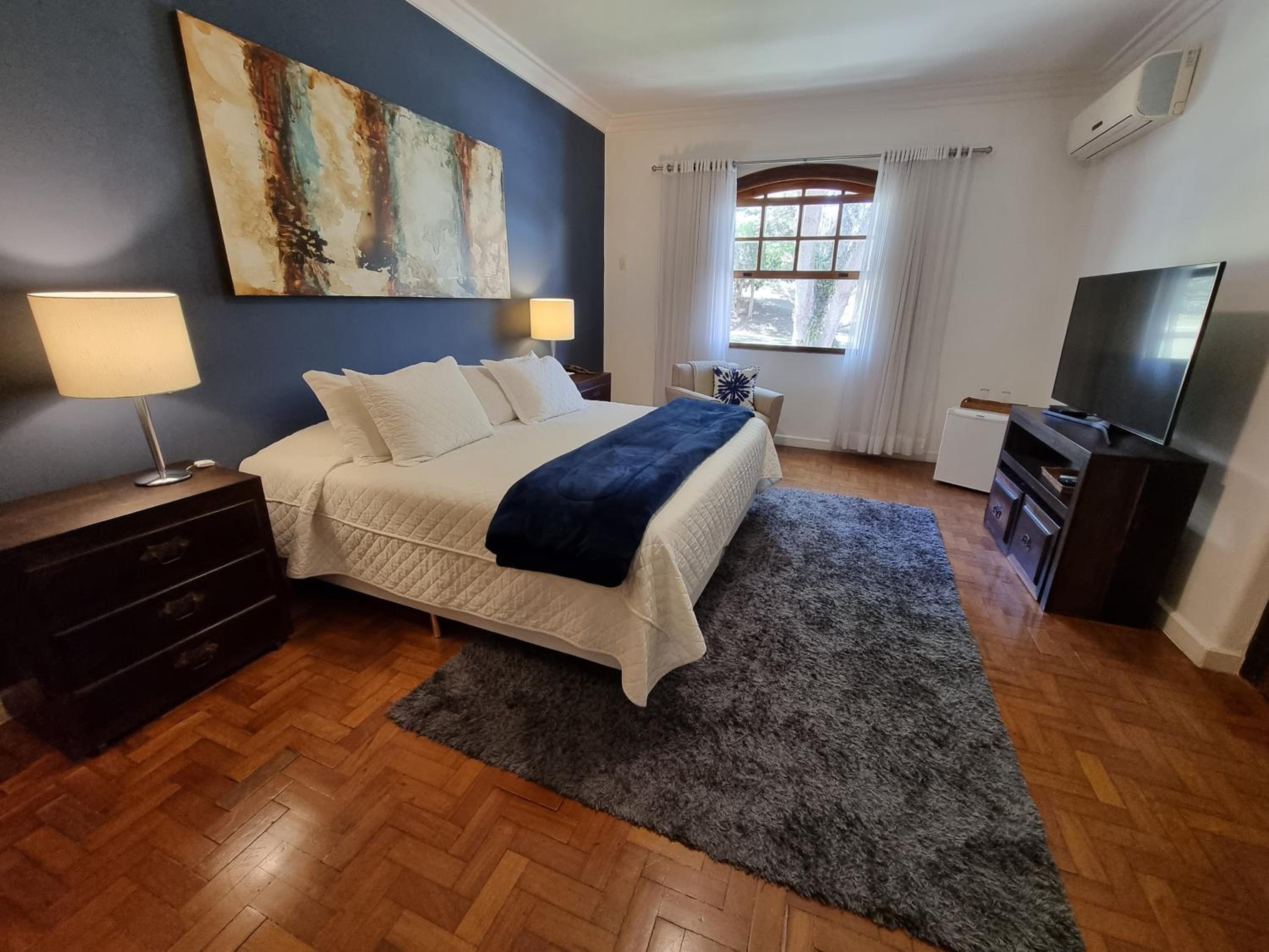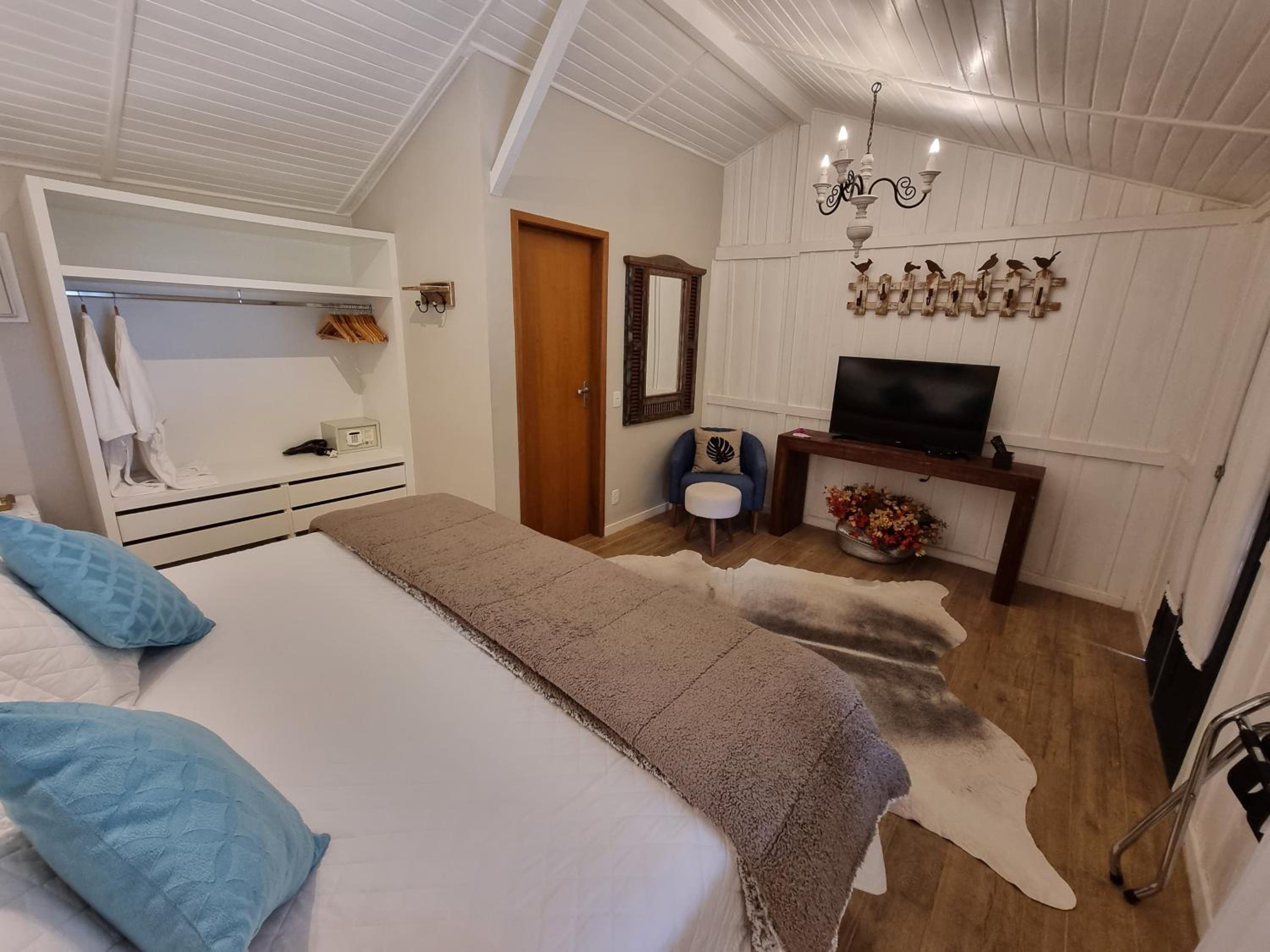 O quarto possui um bom tamanho, cama é muito boa, com bom lençóis e travesseiros. Tem aquecedor para os dias frios.