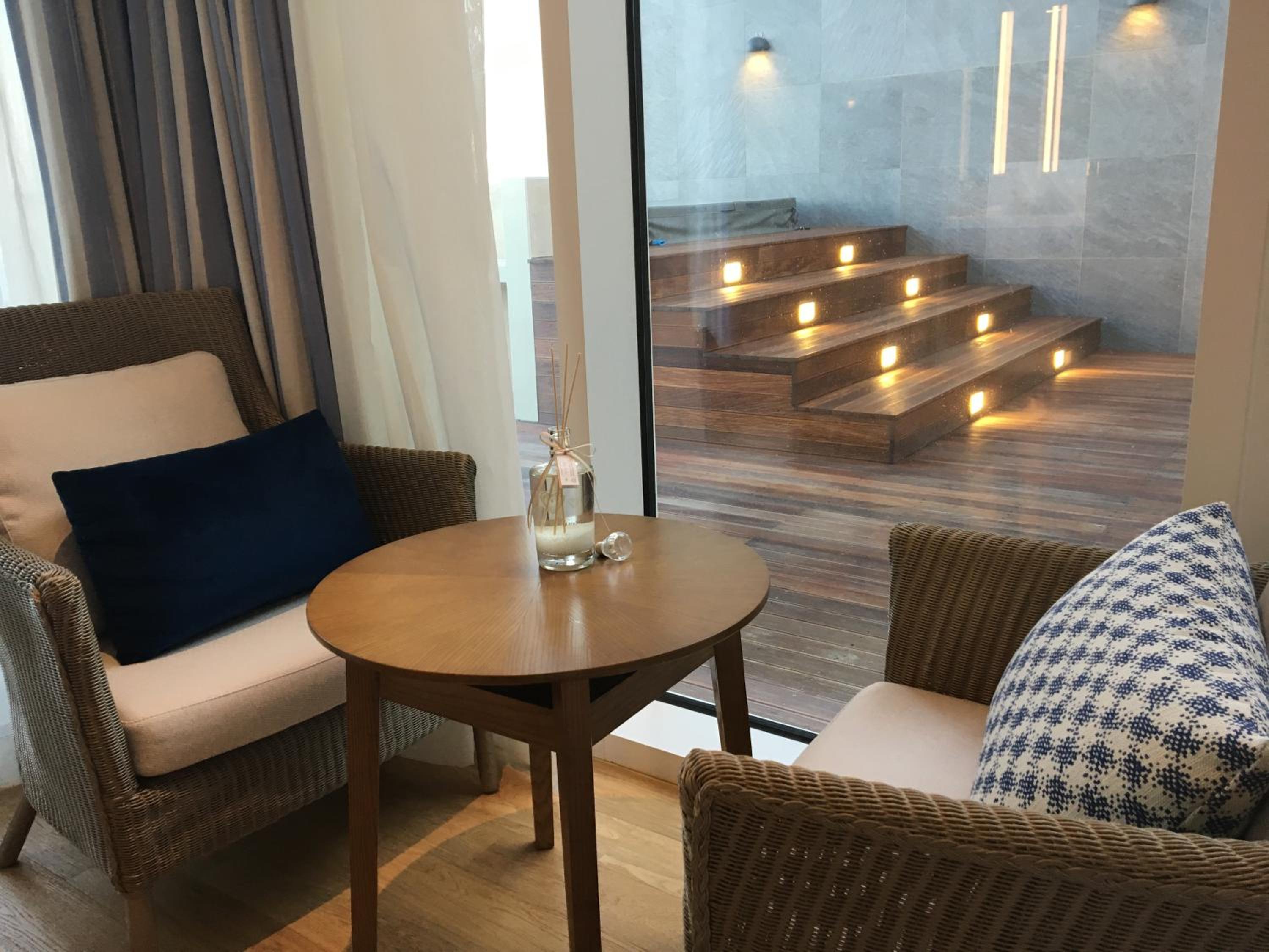 The room was clean, comfortable bedding. The outdoor swimming pools and sauna area were very good too.
