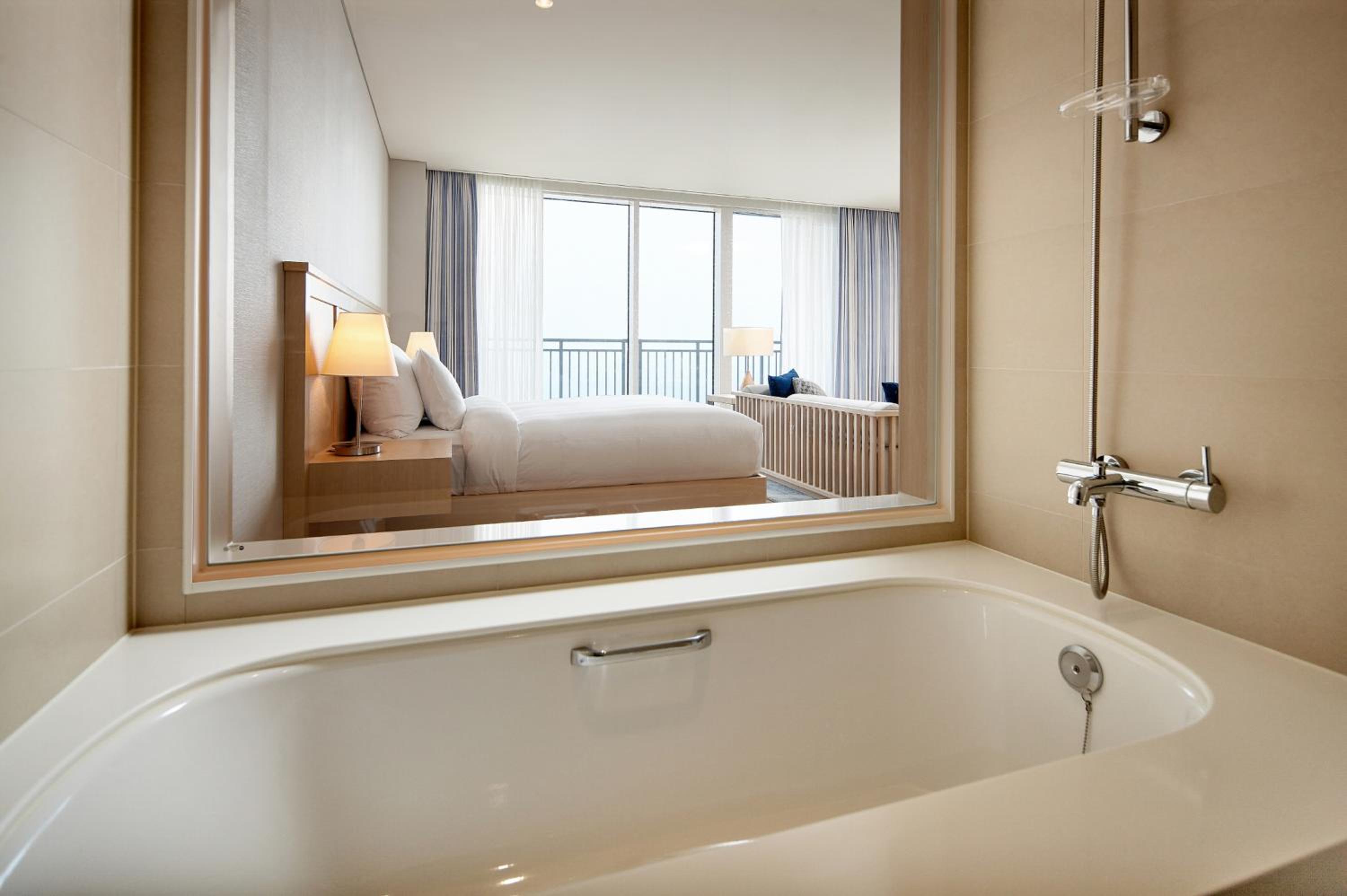 Luxurious Accommodations: Each room at Lotte Resort Sokcho is equipped with modern amenities such as an electric kettle, refrigerator, and flat-screen TV. Upgrade to a room with a spa bath for the ultimate relaxation experience.