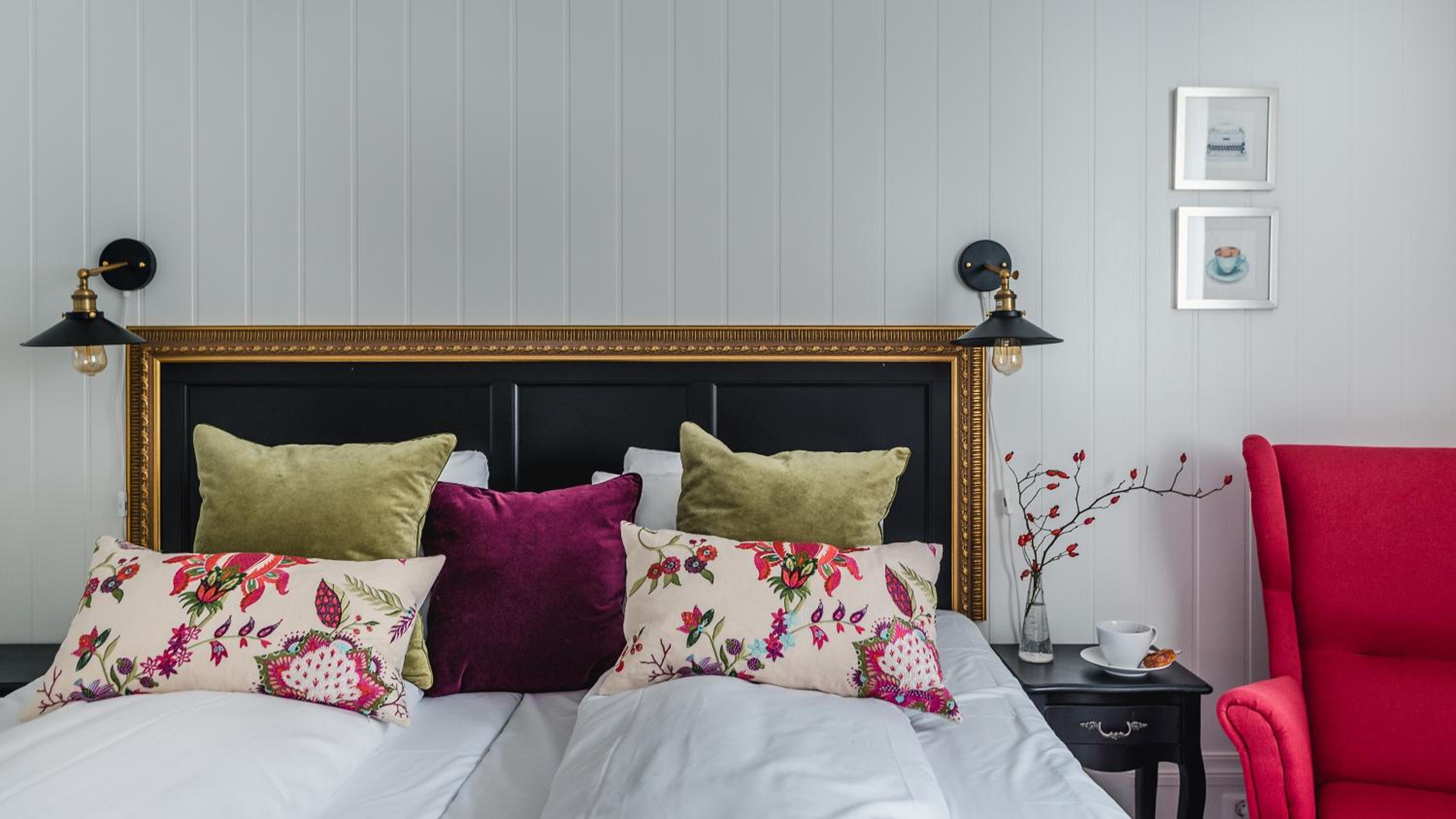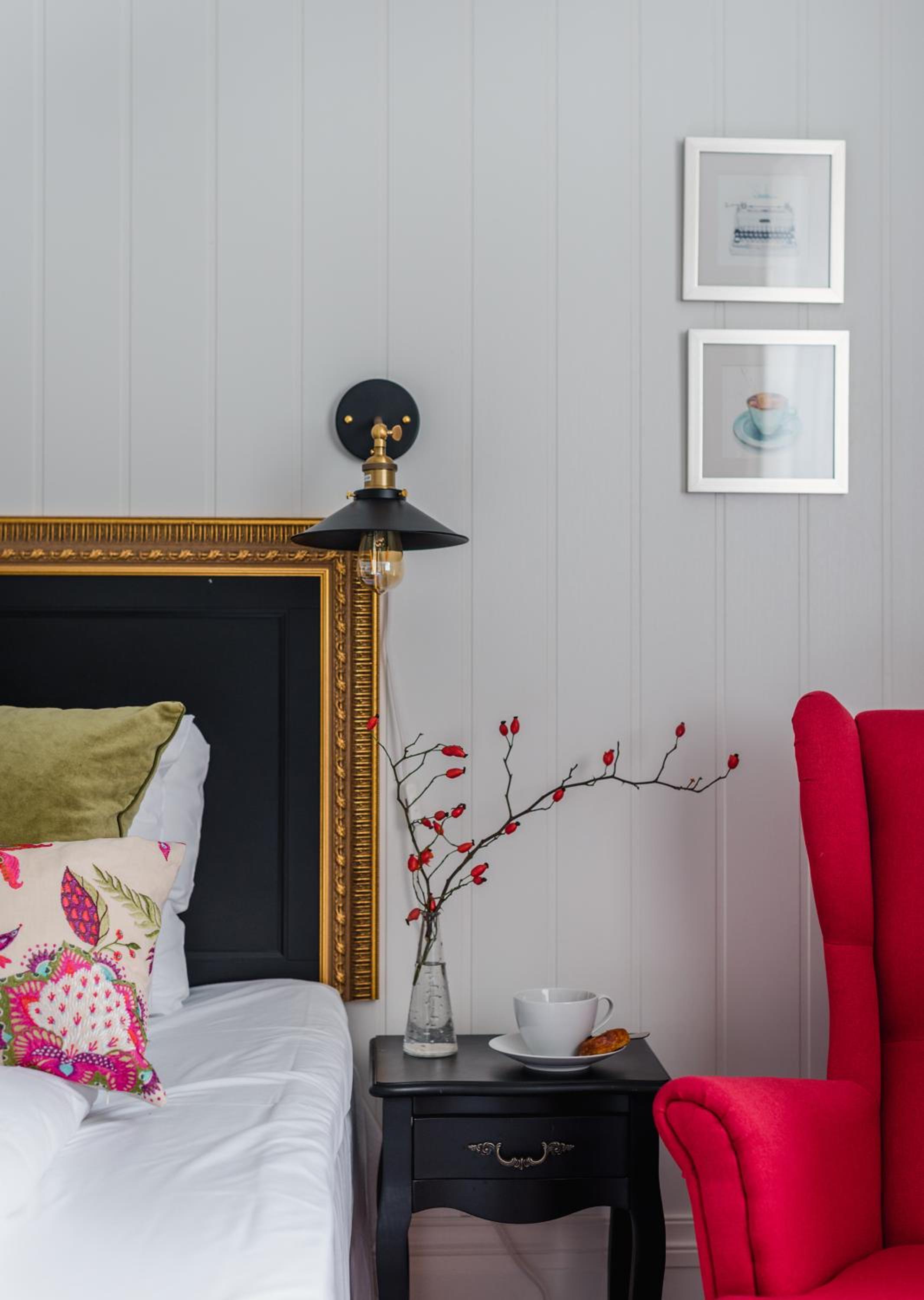 Each room at Store Ringheim Hotel boasts modern amenities like free Wi-Fi and flat-screen TVs. The bedrooms are uniquely decorated, some featuring fireplaces, all with private bathrooms and comfortable seating areas.