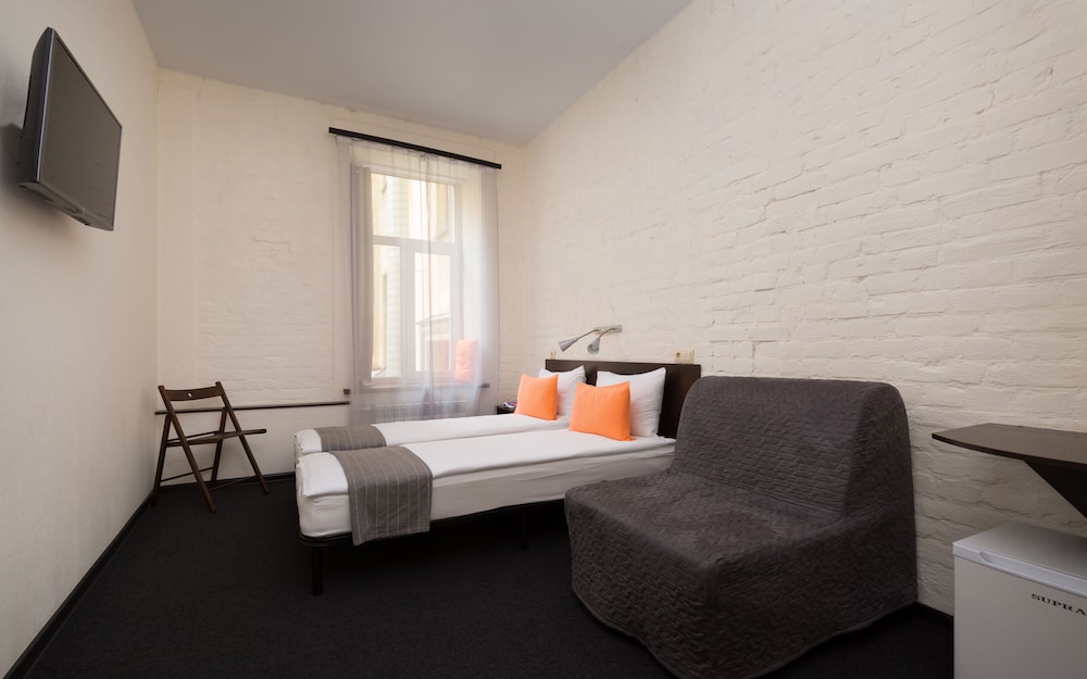 Fairly basic double room and ensuite bathroom both in excellent condition. Breakfast was also basic but sufficient. The street outside was pretty quiet at night, more pedestrian than car noise. Staff was friendly, helpful and professional. The hotel's location near Sennaya Square and 3 metro lines cannot be beat for getting around the city.