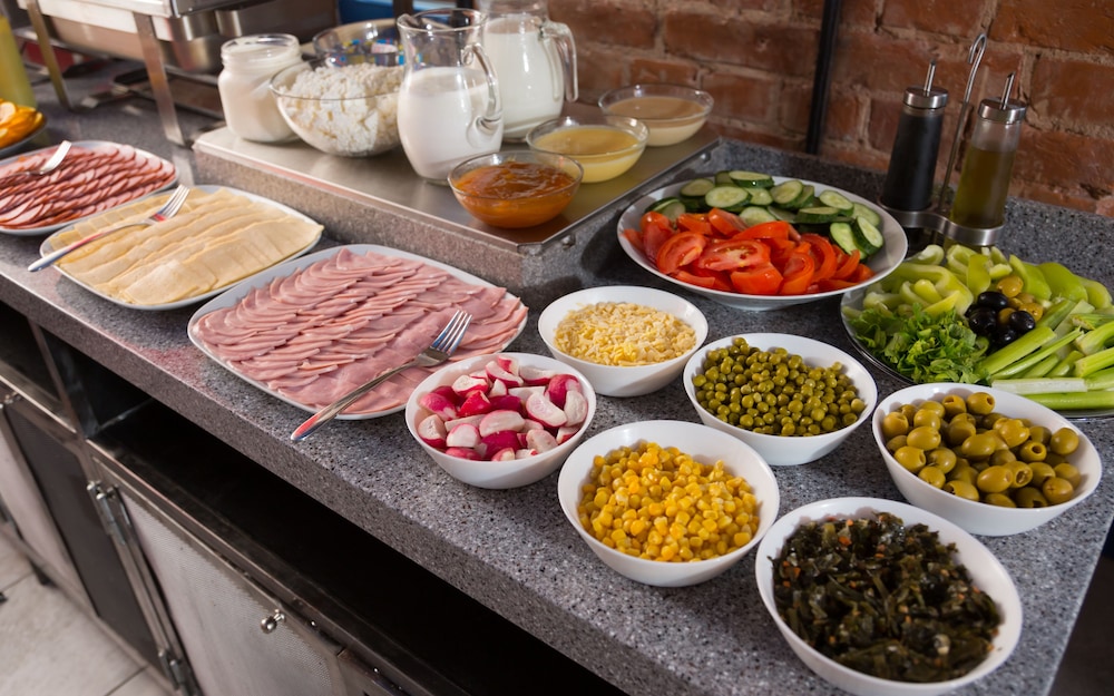 Отдыхали с друзьями. Привлекло удобное расположение отеля и то, что в стоимость включён завтрак. Встретили приветливые девушкин на рецепшен. Быстро разместили, правда сам отель и номера маленькие, но был свободен номер побольше и мы переехали в него, немного доплатив. В отеле были вместе с нами группы из Польши и Южной Америки. Завтрак порадовал, он проходит в ресторане «Рога и копыта», расположенном на первом этаже. Его можно назвать европейским, блюд достаточно. Круглосуточно и бесплатно доступен чай, кофе, вода. Если попросите на рецепшене, дадут чайник в номер. Уборка номеров замечательная и вообще в отеле очень комфортно и по-домашнему!