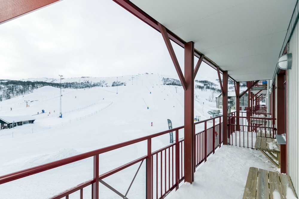 Fin och praktisk lägenhet med toppenläge med utsikt över backen.