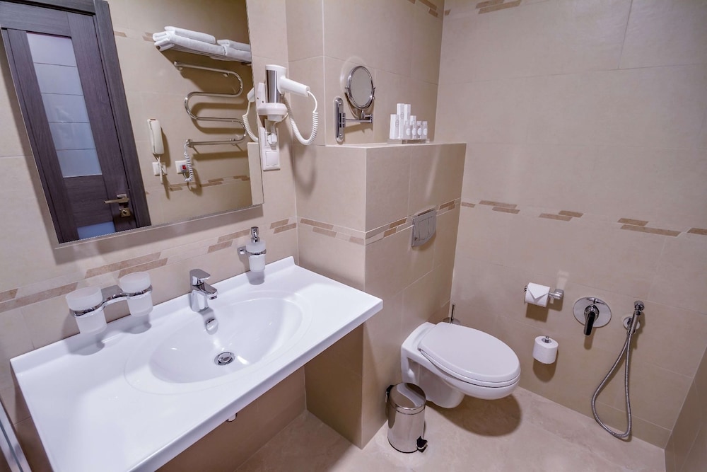 Хотя отель и не сетевой, но очень приятный. Большая площадь номеров. Новая Мебель. Хорошая кровать. В некоторых номерах есть кухня. В люксе есть отдельная ванная с панорамным видом на город, только к сожалению это не джакуззи. Джакуззи было было бы идеально. Завтраки - не шведский стол. Выбор из трёх вариантов завтраков. Вкусно, но все лимитировано. В свободном доступе только каши и чай. В соседнем здании на последнем этаже есть ресторан Карлсон с панорамным видом на залив.