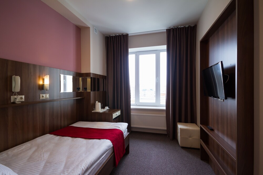 В начале писала отзывы восторга, но в процессе проживания мнение изменилось. Гостиница с мини-кухней, задумка просто супер, реально удобно, но номер не пылесосят, поэтому очень грязно становится. Есть утюг и доска - огромный плюс. Полотенца чистые, без запаха. Но на окнах только шторы, как-то не уютно, шторы закрыл, стало темно, а открыл голая комната. Много шкафов и полок +. Завтрак тоже + (вкусно правда). Но отношение персонала это просто кошмар. Уважение 0, тактичность 0, даже пришлось поругаться, что впервые в гостинице со мной произошло. Если бы не персонал, я бы сказала это лучшая гостиница в Чебоксарах (сравниваю с тремя, где я уже была до этого).