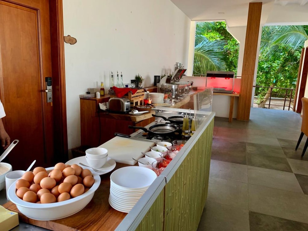 Had a great time staying here on our 4 day trip to dharavandhoo. The hotel is modern and clean. The beds are very comfortable and soft, the bathtubs are large and grand. Due to cloudy weather the tv reception is in and out most of the day. I experience this on most trips i take to the Maldives even on private island resorts so not their fault. We were on a half board option because we were usually doing a daytrip tour every day on the island. The breakfast always had great omelet and potatoes of some sort that changed daily as well as several other dishes and fruit. Coffee was available so was nice to start our morning trips. The food here was better than most local islands I have stayed at. The staff was exceptional from checkin to checkout. Location is right on bikini beach with the best snorkeling right in front of the hotel. Aside from our hanifaru bay trips we had the pleasure of seeing a whale shark right on the hotel house reef only 20 meters from the beach. We are coming back soon for the culmination of manta season and will definitely be staying here for part of our Maldivian travels.