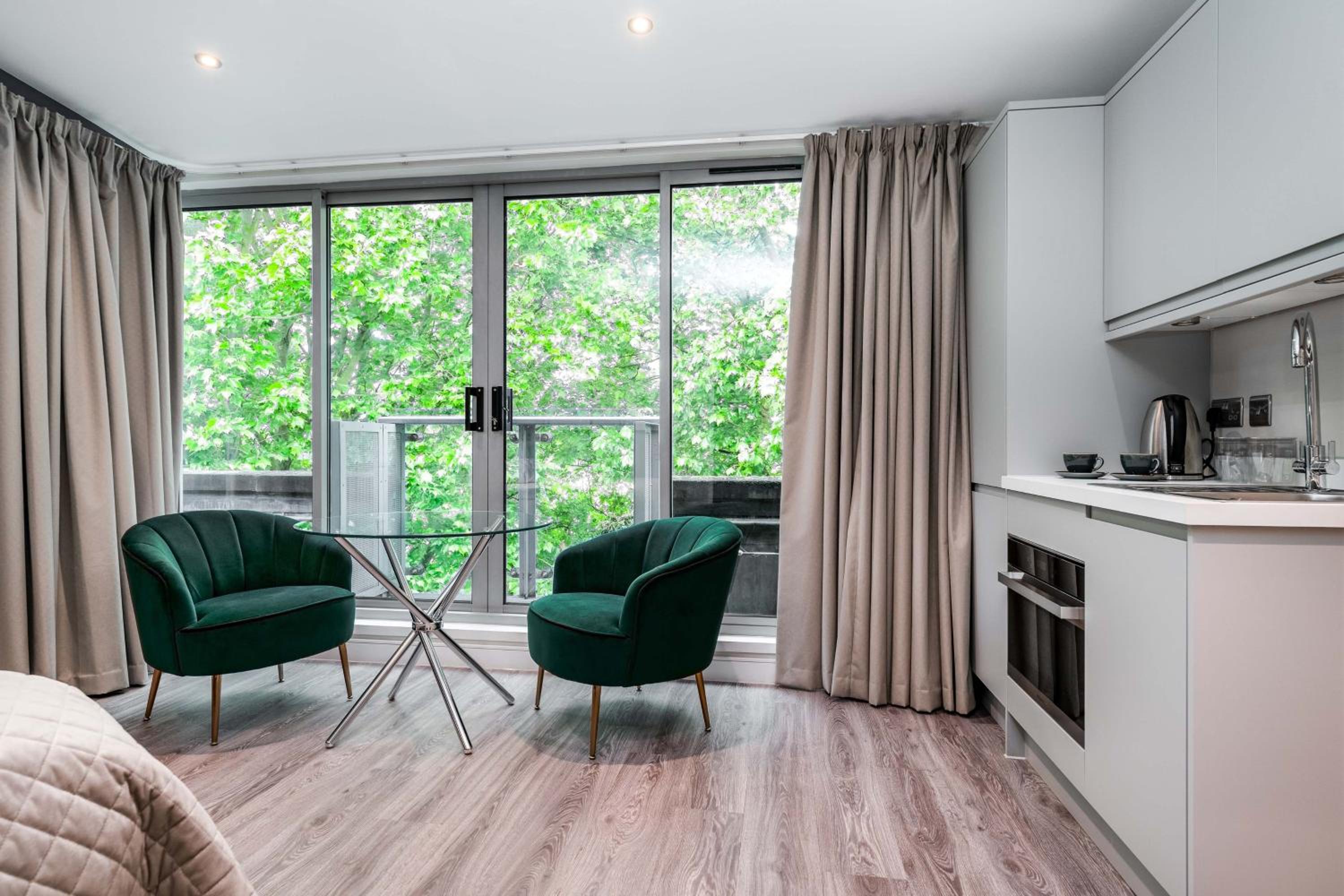 Experience a blend of modern and classic design in our rooms, complete with kitchenettes and Egyptian cotton sheets for a comfortable stay.