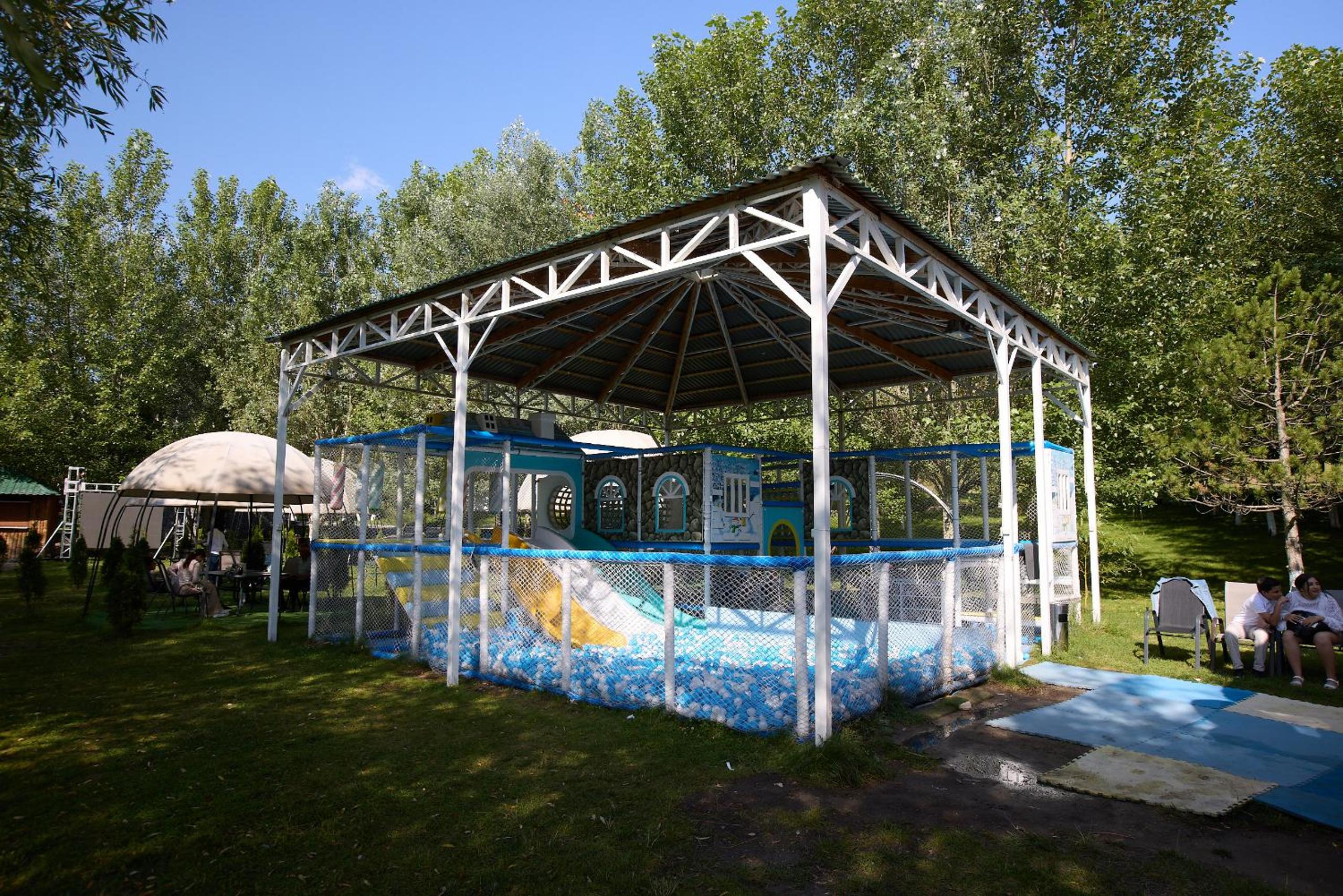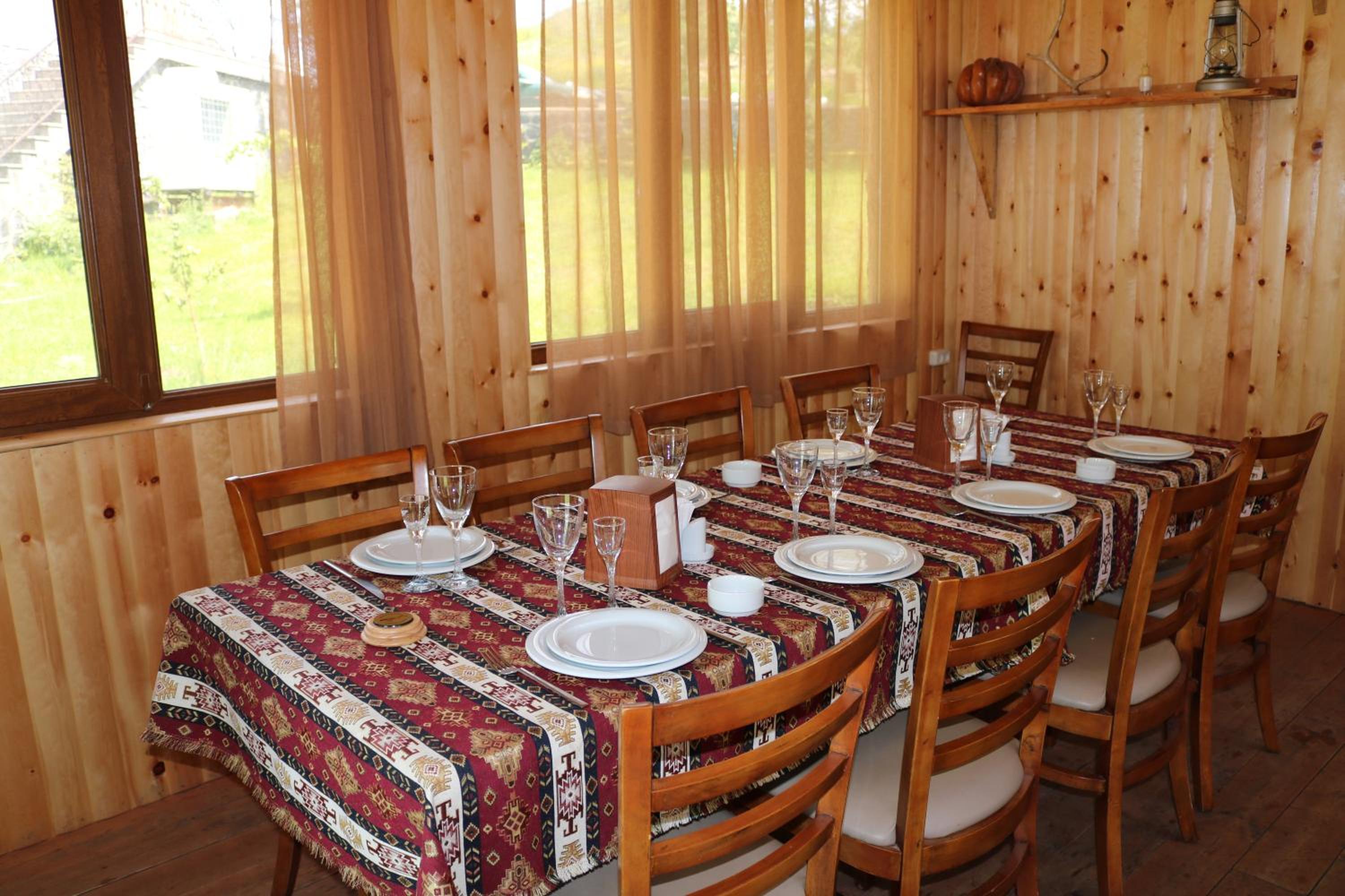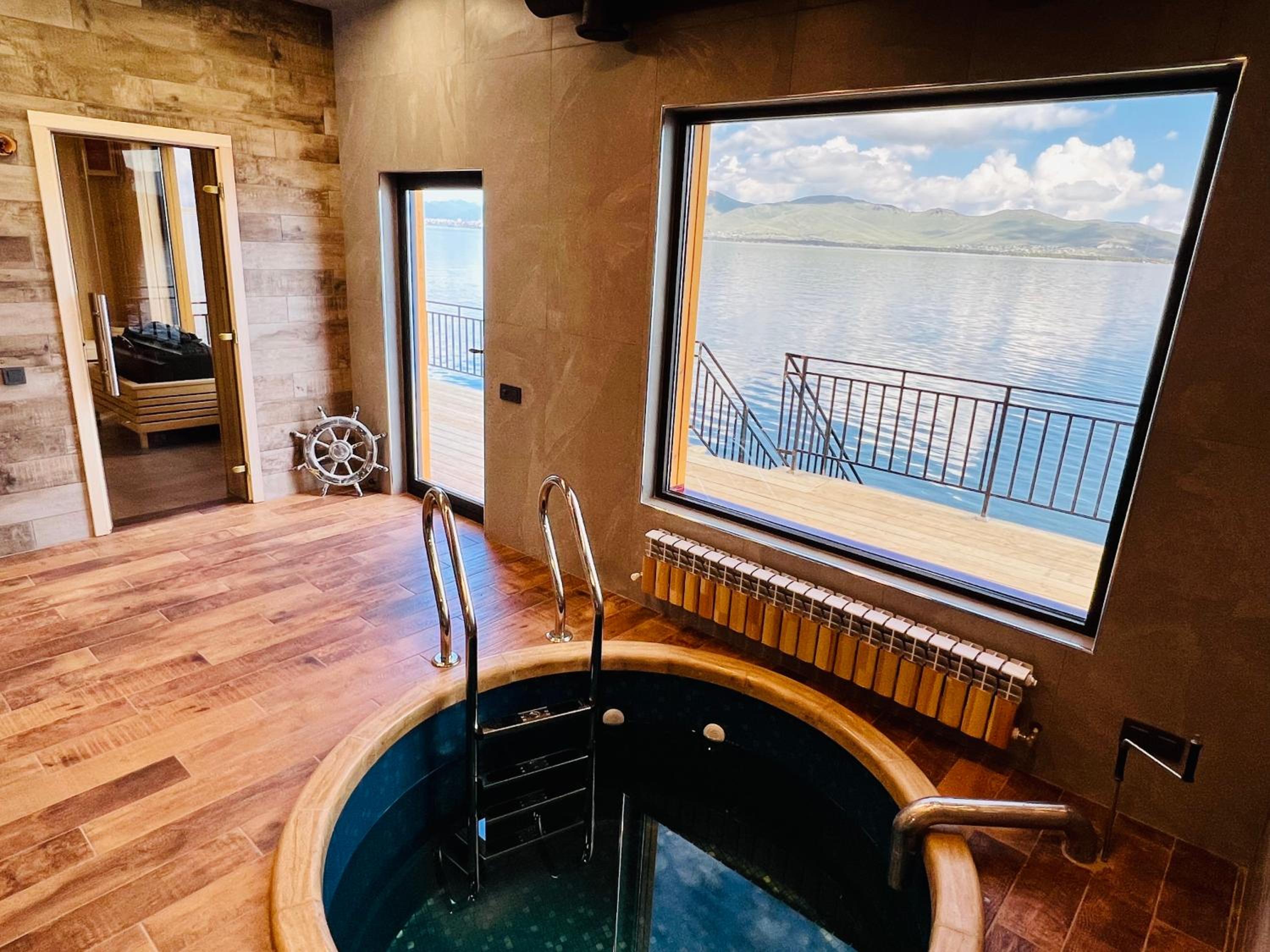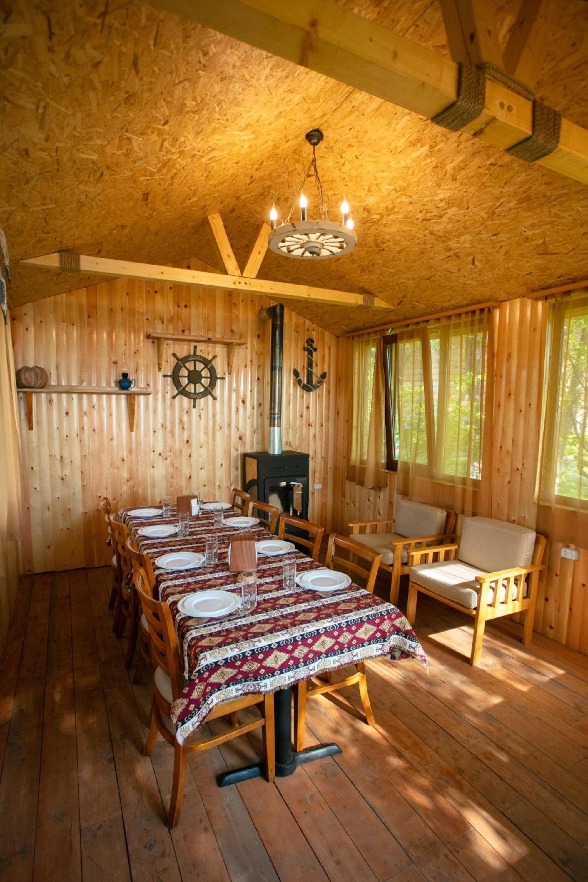 Прекрасное месторасположения, удобное бунгало с чудесными панорамными окнами с видом на озеро Севан. В бунгало имеется гостиная с кухней и камином, комфортна мебель, как в доме, так и на террасе. Кухня оборудована бытовой техникой и посудой. По запросу очень быстро предоставили дополнительную посуду. Также были представлены ванные принадлежности. На территории три ресторана, детская площадка, открытый бассейн.