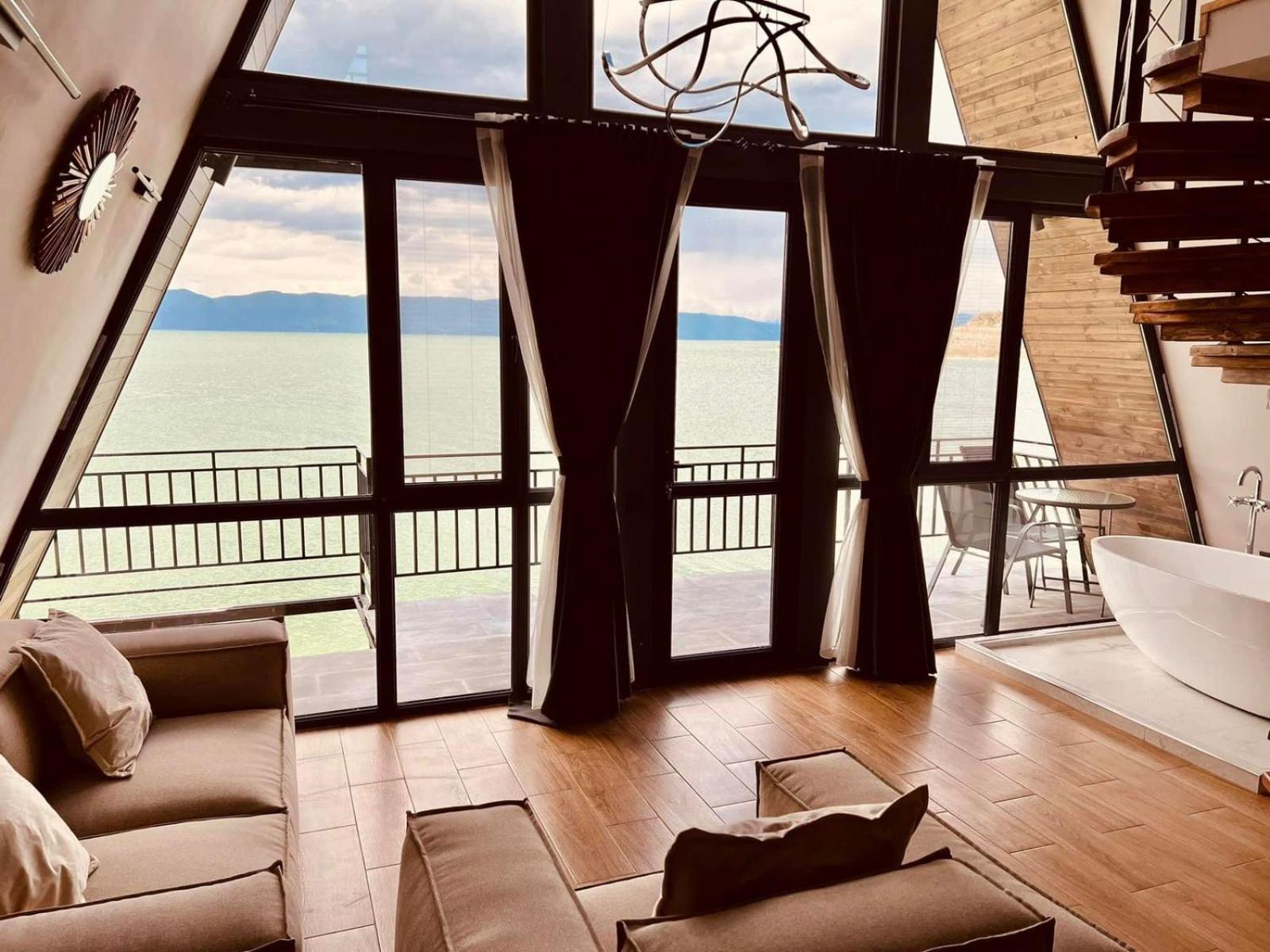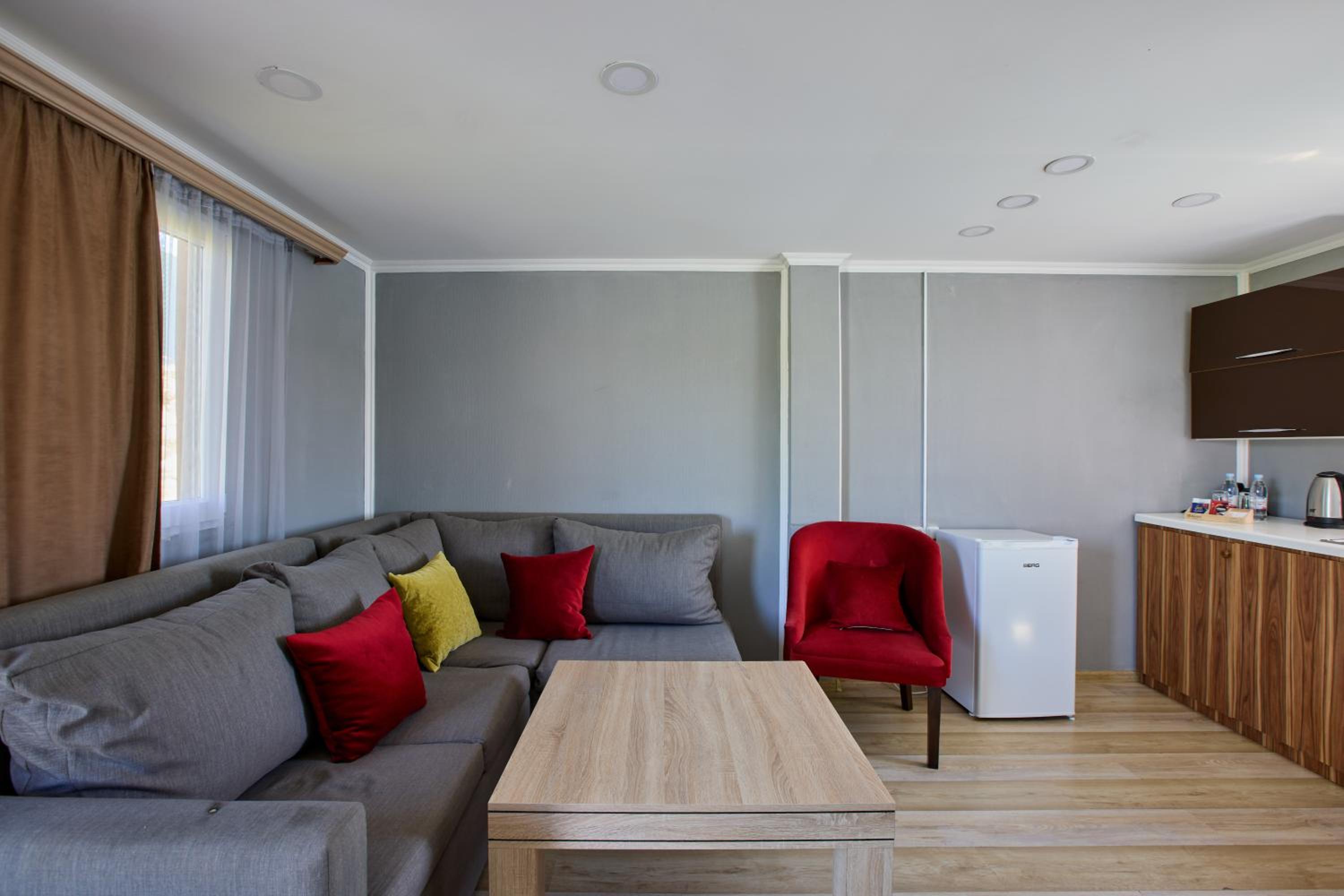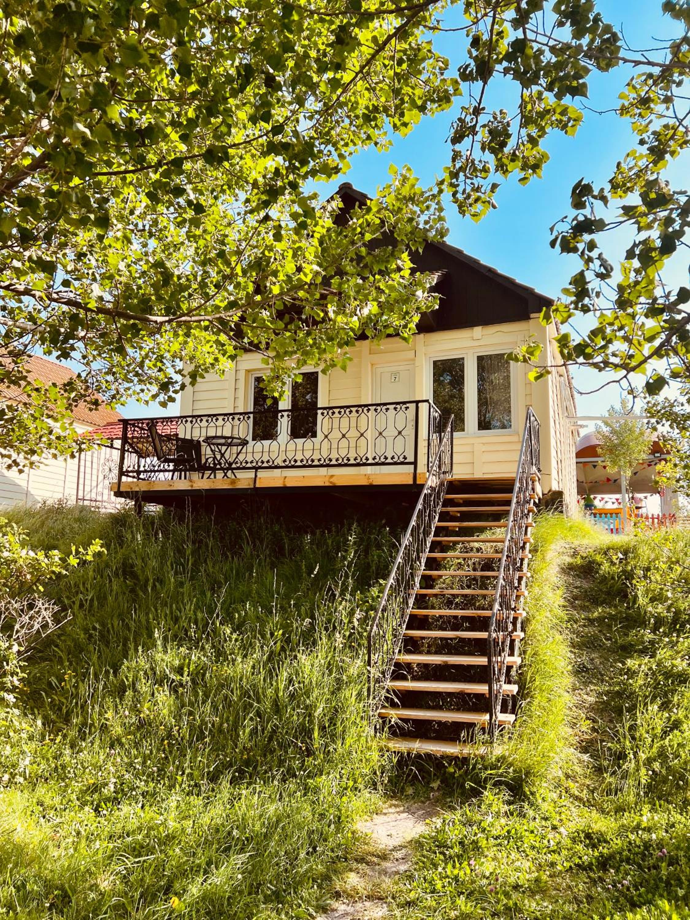 Прекрасное месторасположения, удобное бунгало с чудесными панорамными окнами с видом на озеро Севан. В бунгало имеется гостиная с кухней и камином, комфортна мебель, как в доме, так и на террасе. Кухня оборудована бытовой техникой и посудой. По запросу очень быстро предоставили дополнительную посуду. Также были представлены ванные принадлежности. На территории три ресторана, детская площадка, открытый бассейн.