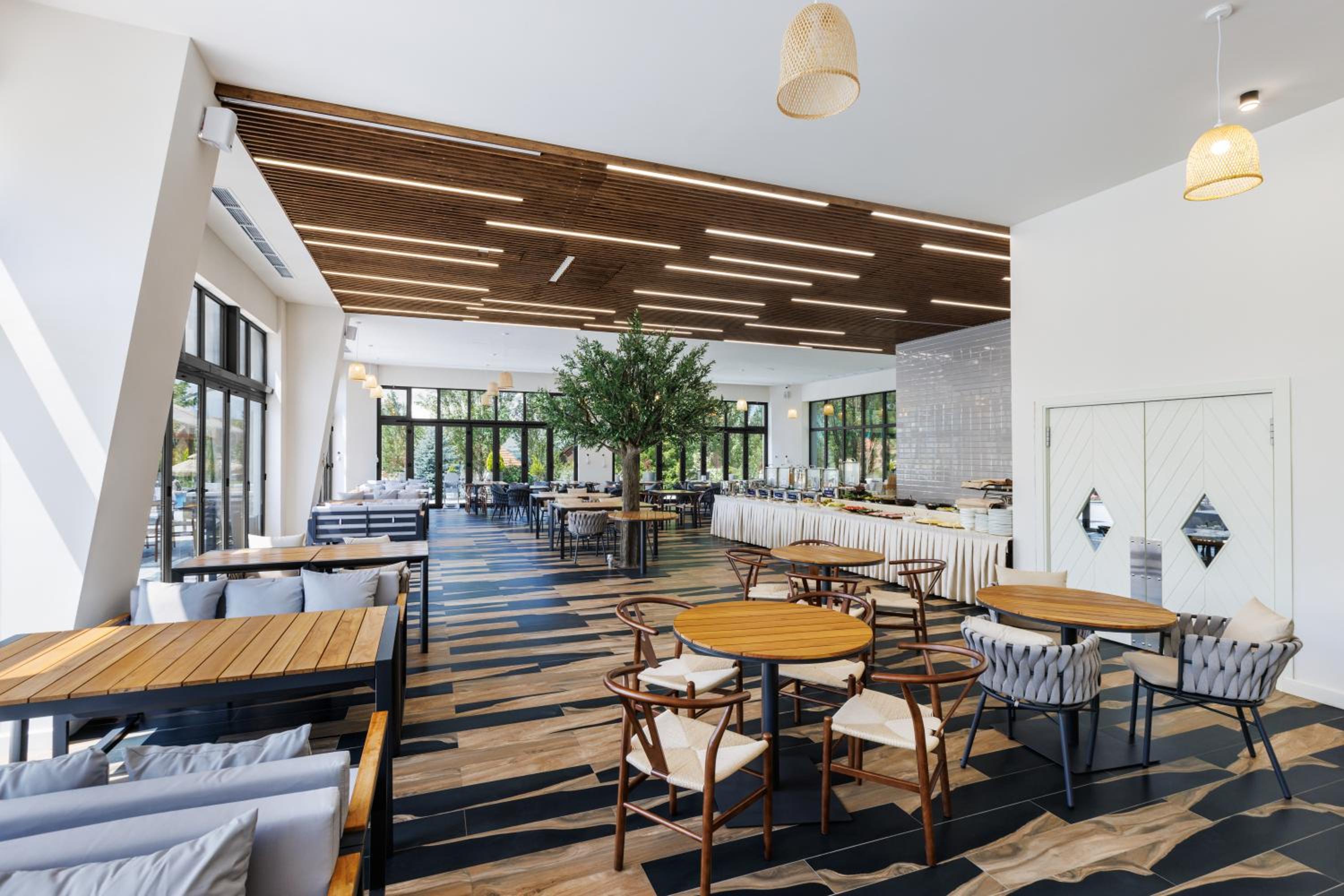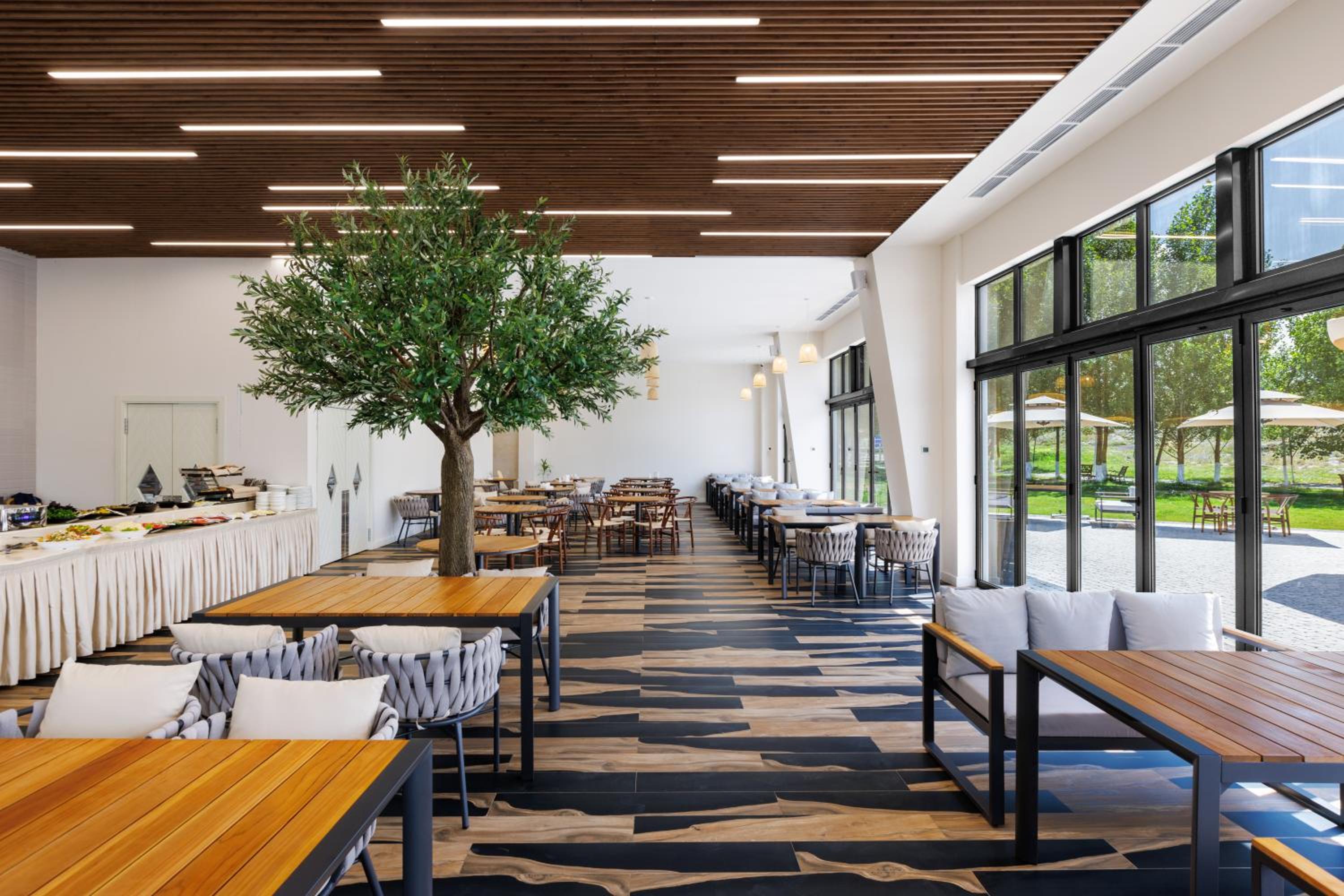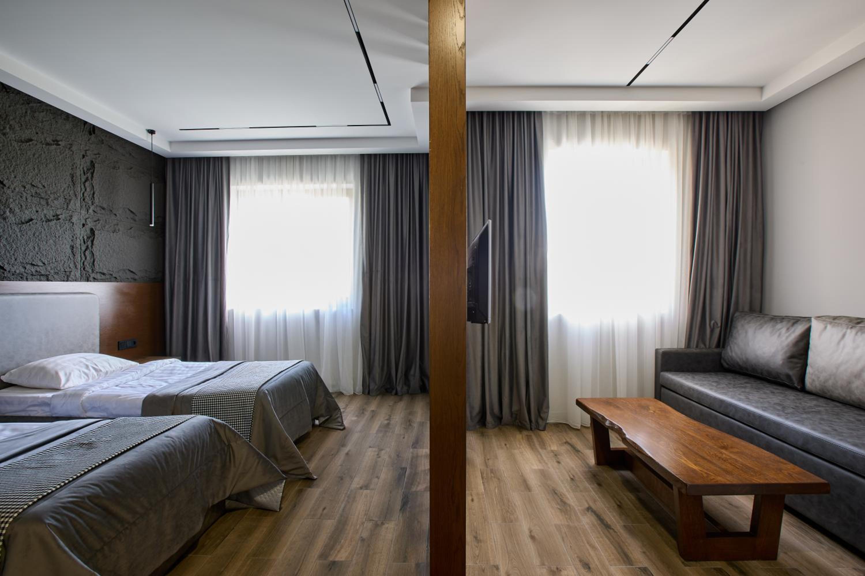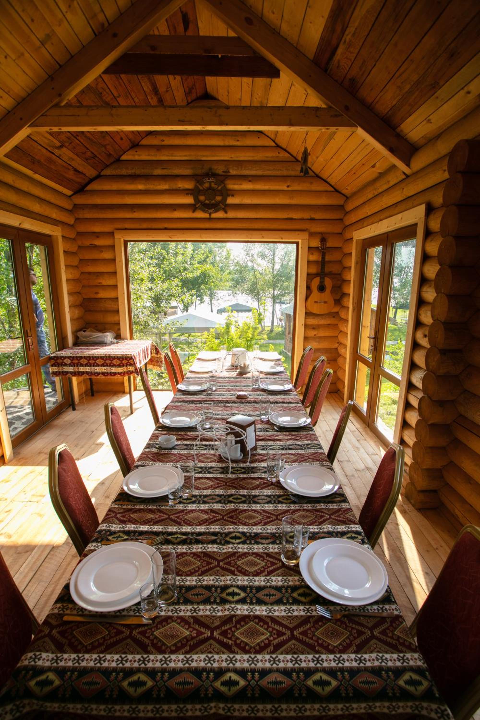 Прекрасное месторасположения, удобное бунгало с чудесными панорамными окнами с видом на озеро Севан. В бунгало имеется гостиная с кухней и камином, комфортна мебель, как в доме, так и на террасе. Кухня оборудована бытовой техникой и посудой. По запросу очень быстро предоставили дополнительную посуду. Также были представлены ванные принадлежности. На территории три ресторана, детская площадка, открытый бассейн.