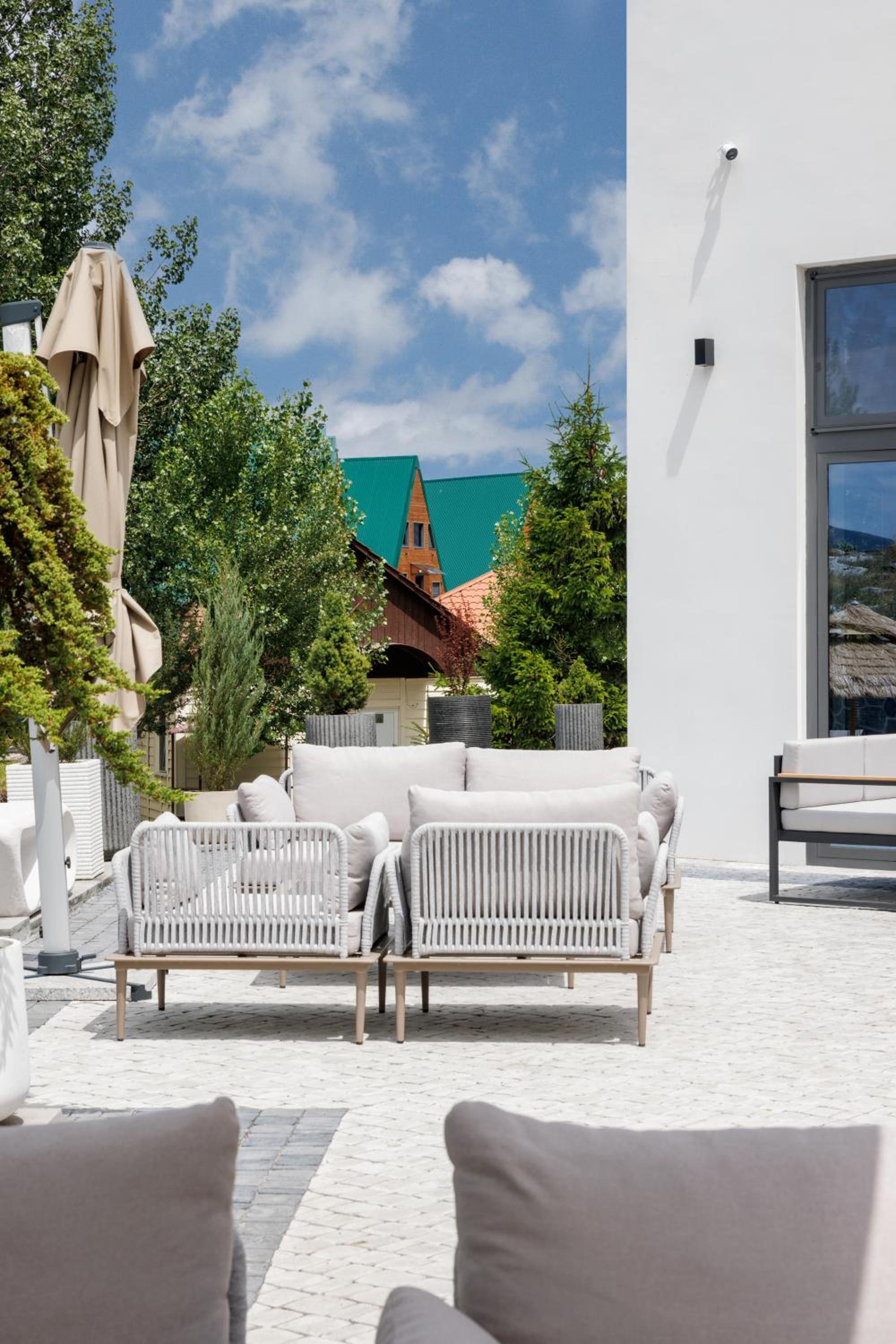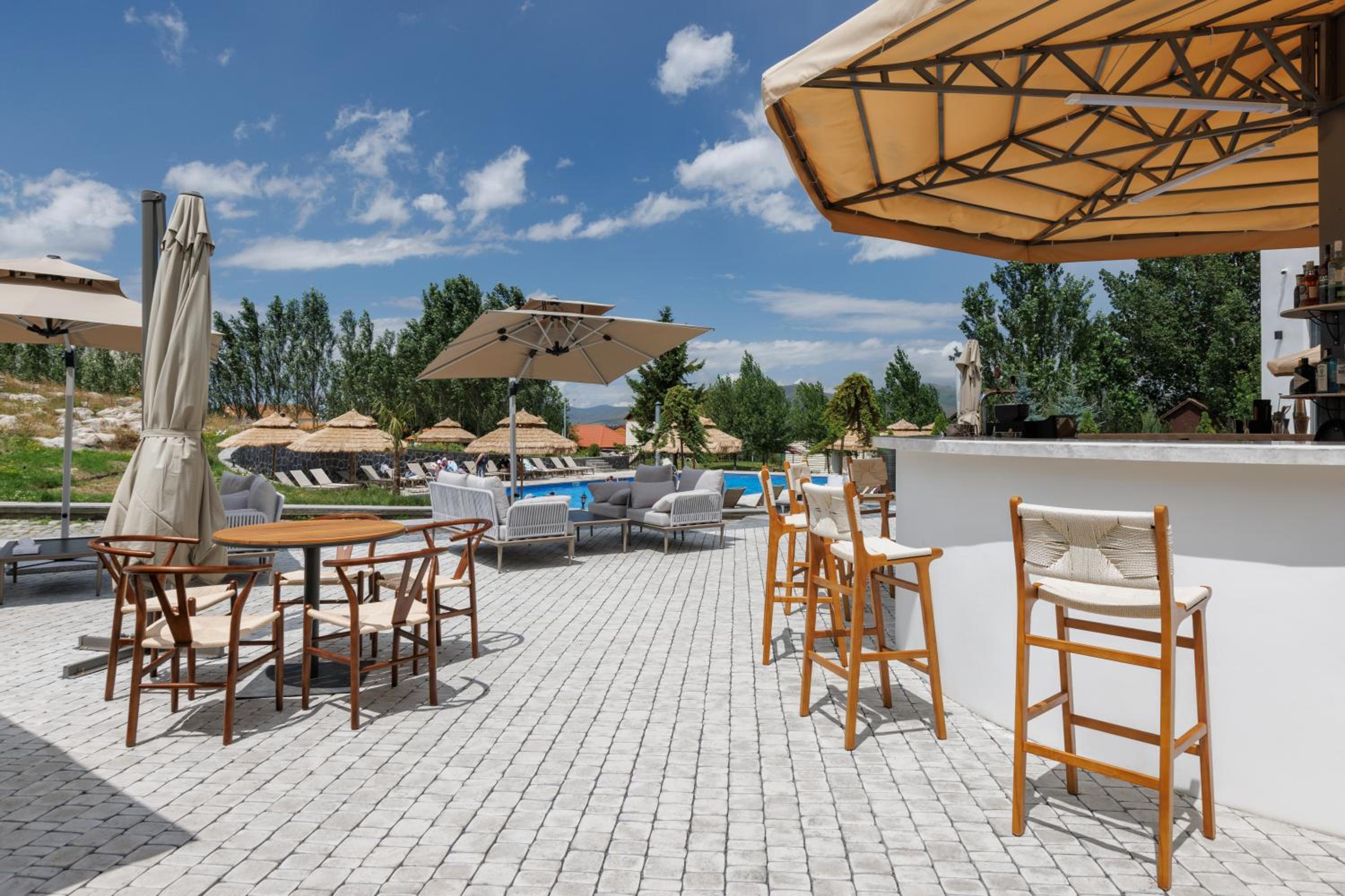 Indulge in the resort's seasonal outdoor pool, sauna, and BBQ facilities for a relaxing and enjoyable stay. The spacious rooms with private balconies or patios, along with free WiFi and flat-screen TVs, ensure a comfortable retreat.