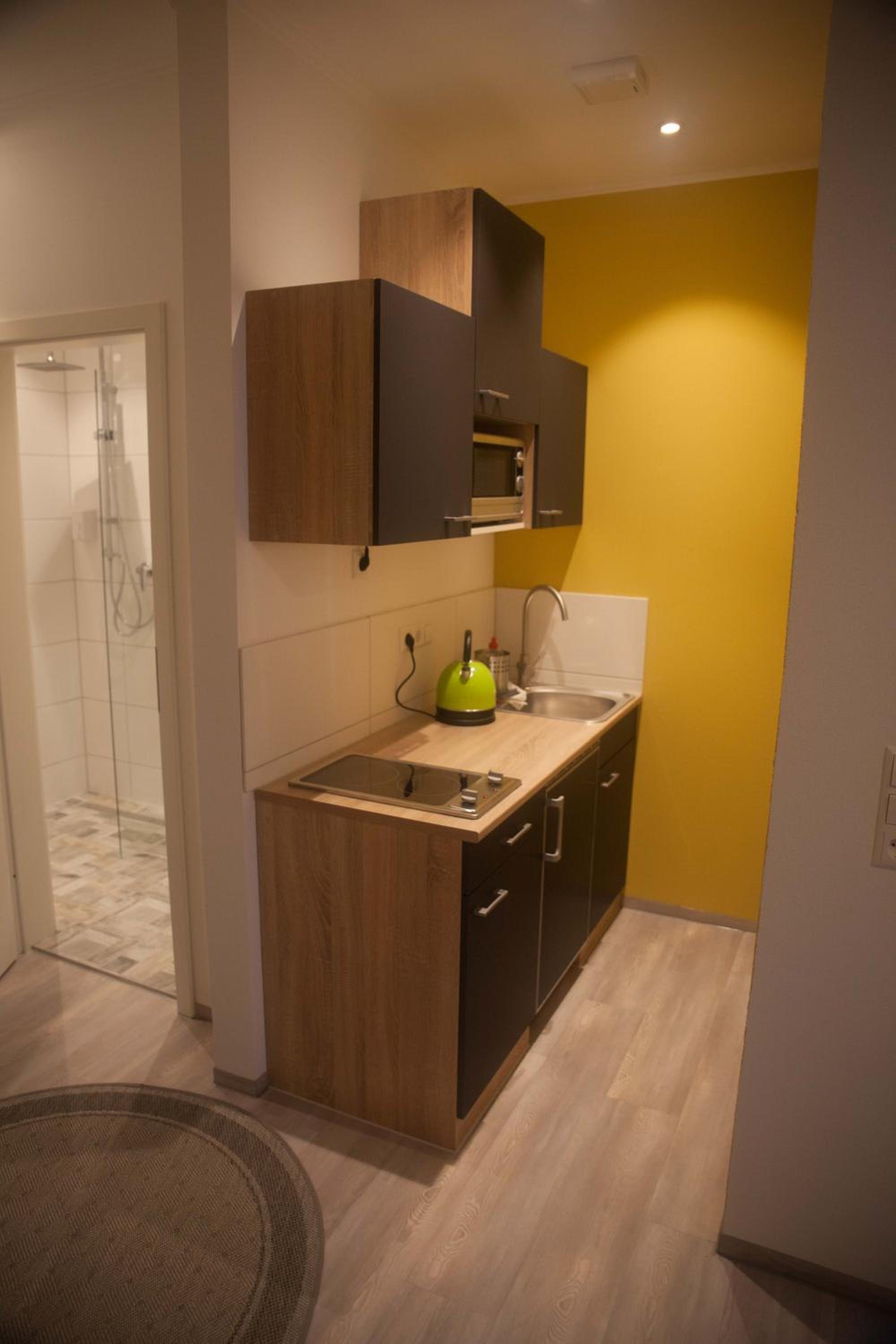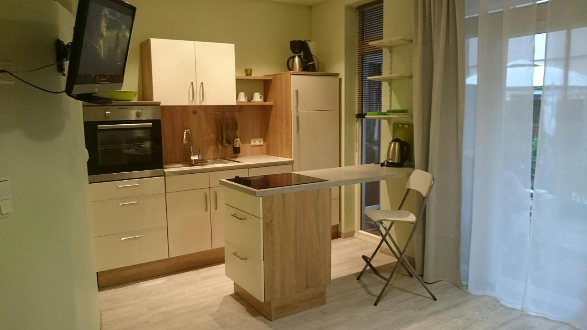 Guests can enjoy amenities such as tea and coffee facilities, a seating area, and a desk in the modern rooms. The apartments come with fully equipped kitchenettes for those who prefer to prepare their own meals. Additionally, a delicious breakfast is served daily at the family's bakery next to the hotel.