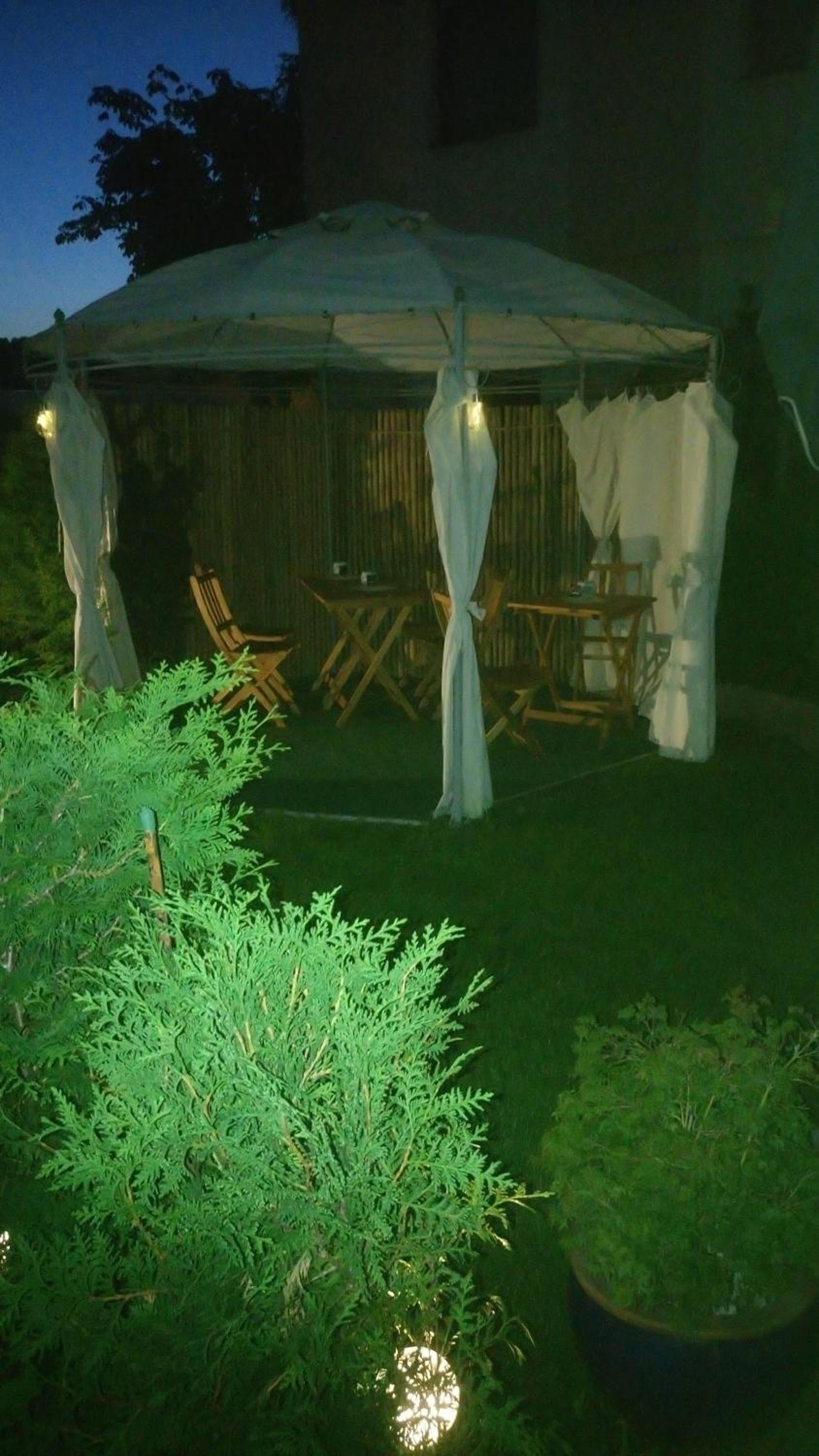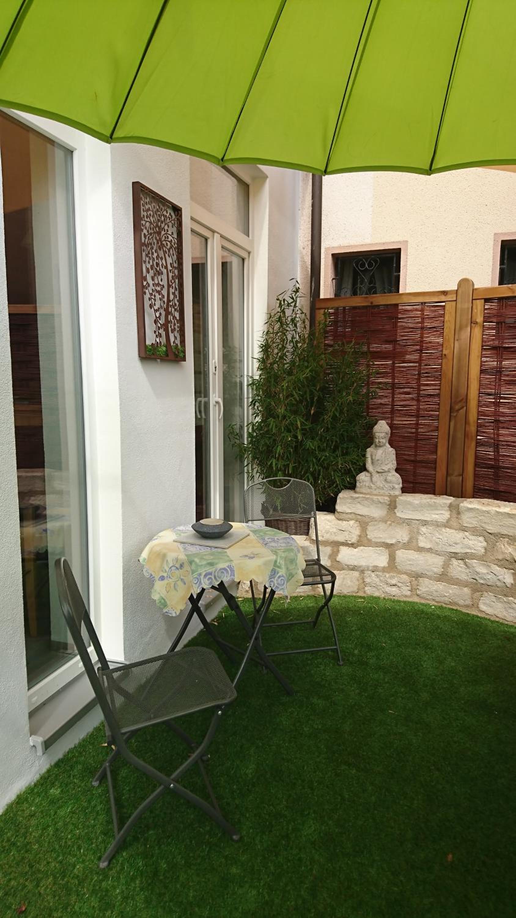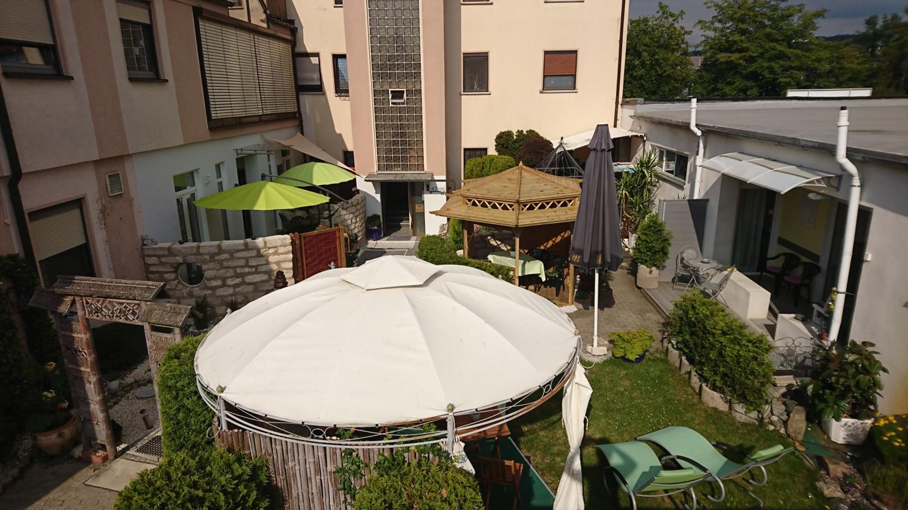 The hotel is situated in a small, but very tidy rural place. What I expected was a regular hotel with standard household equipment. What I found was a tastily decorated room, centered around inner peace and meditation. All flats are situated around a beautiful inner garden with cute pavilions available to the guests. Easy mornings with coffee. It felt like home. I was there for just a few days, but with the extra equipment it is also suited for a longer stay. The owner and the service personnel were very kind.