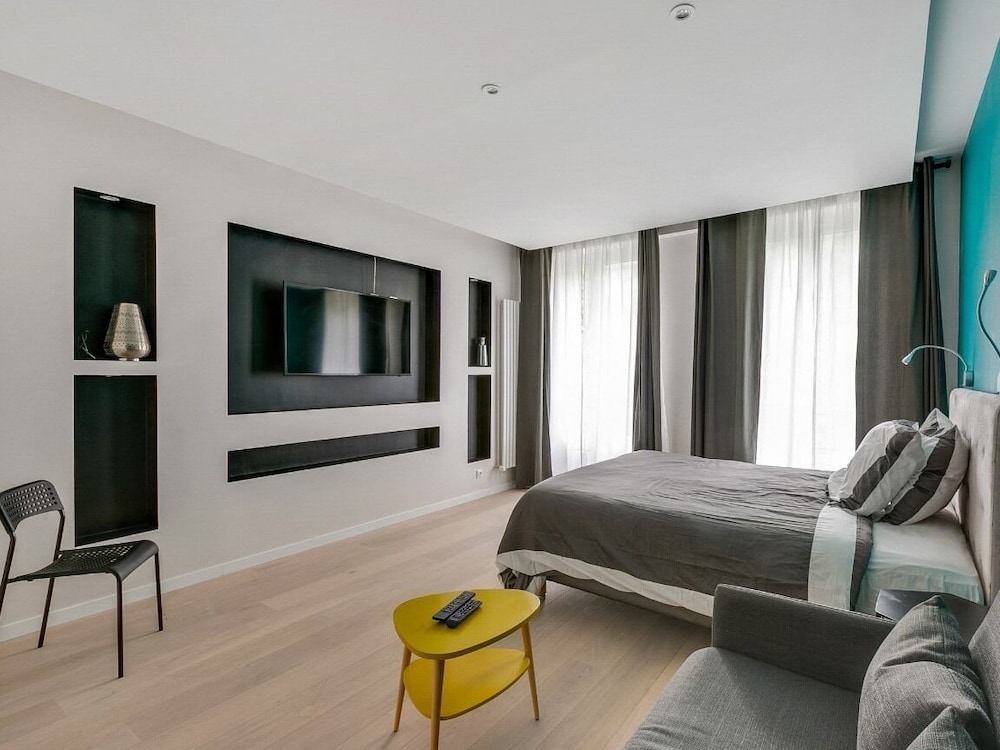 Our studio was perfect for us. It was near a metro station which made getting around the city easy. Bedding was comfortable. AC worked.
