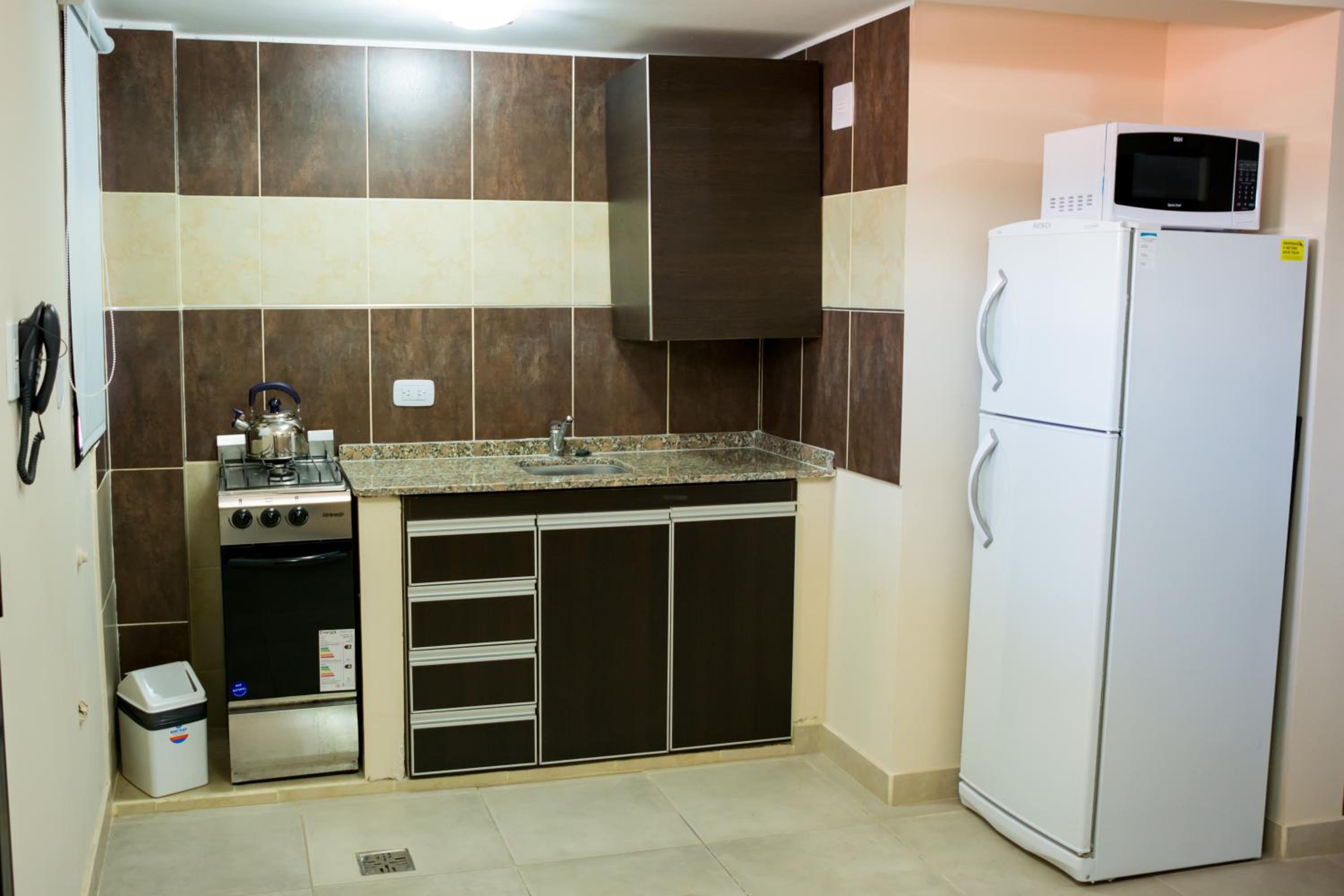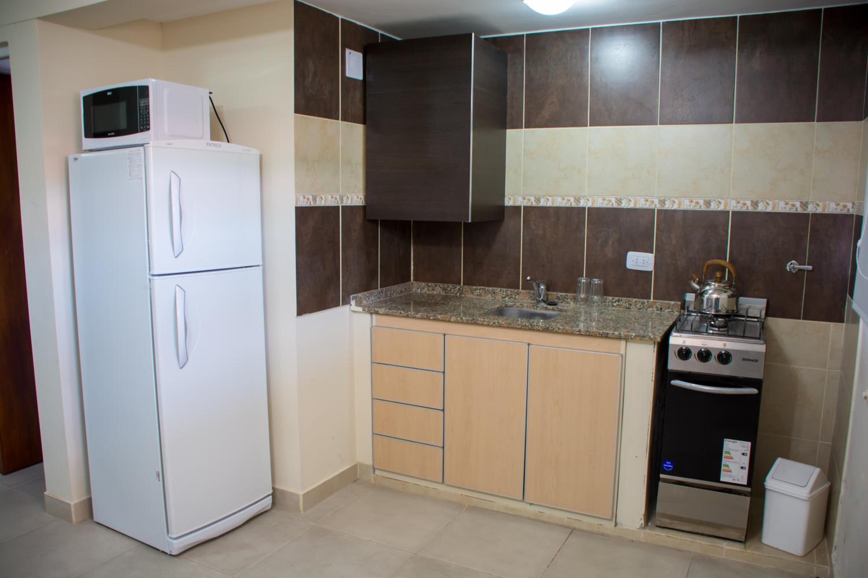 La cocina no estaba equipada. Sólo había una pava para el anafe y 2 tazas, con dos vasos. Sin embargo, pedimos algunos untencillos y el personal fue muy amable.