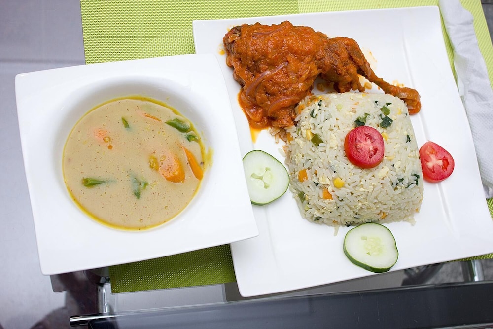 Comfortable Rooms: Feel at home in the air-conditioned rooms with free Wi-Fi, flat-screen TVs, and daily housekeeping. Conveniently located near major landmarks like Ecowas Secretariat and Aso Villa.