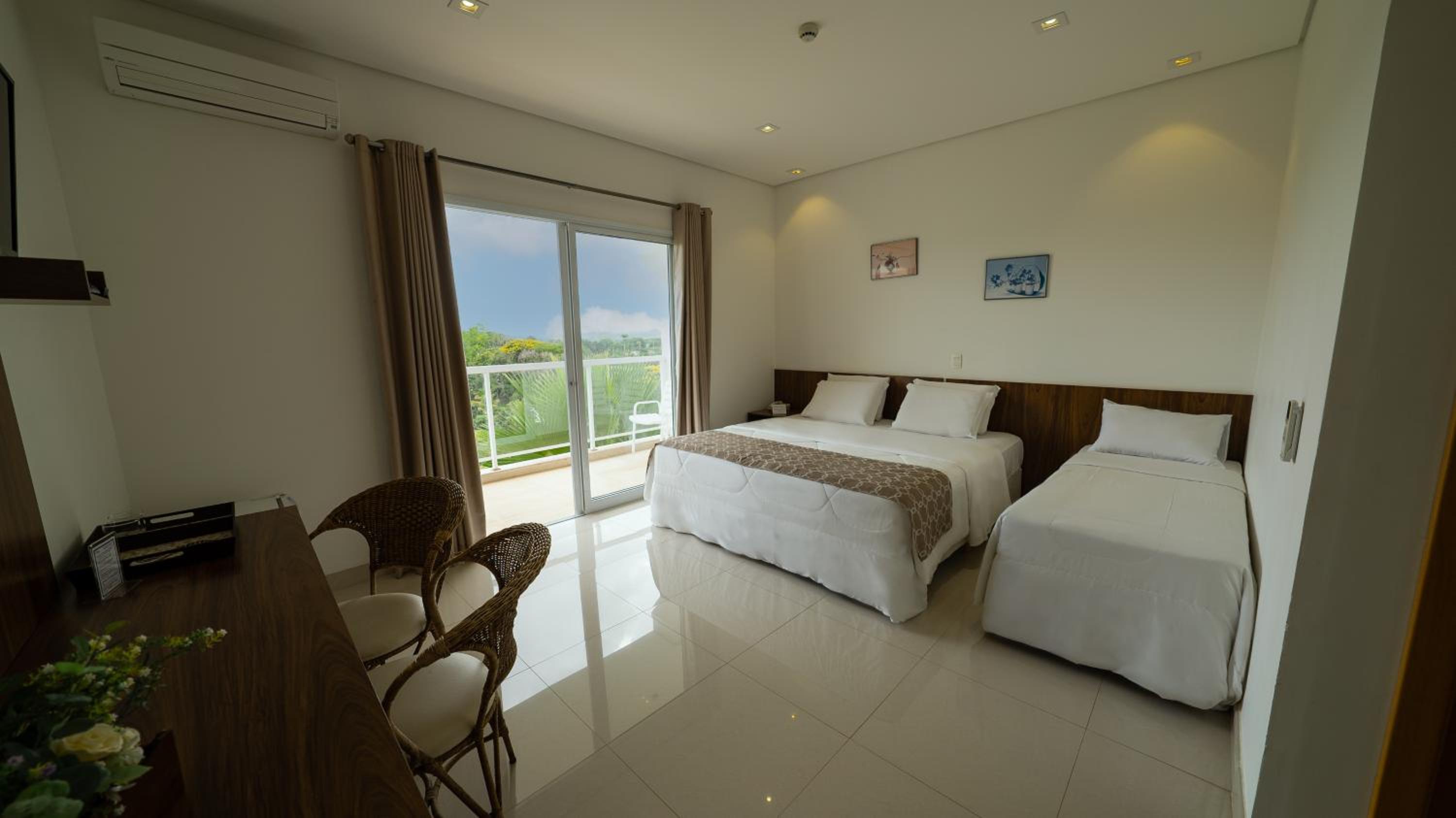Gostei do tamanho do hotel, do espaço verde, dos jardins e das acomodações.
