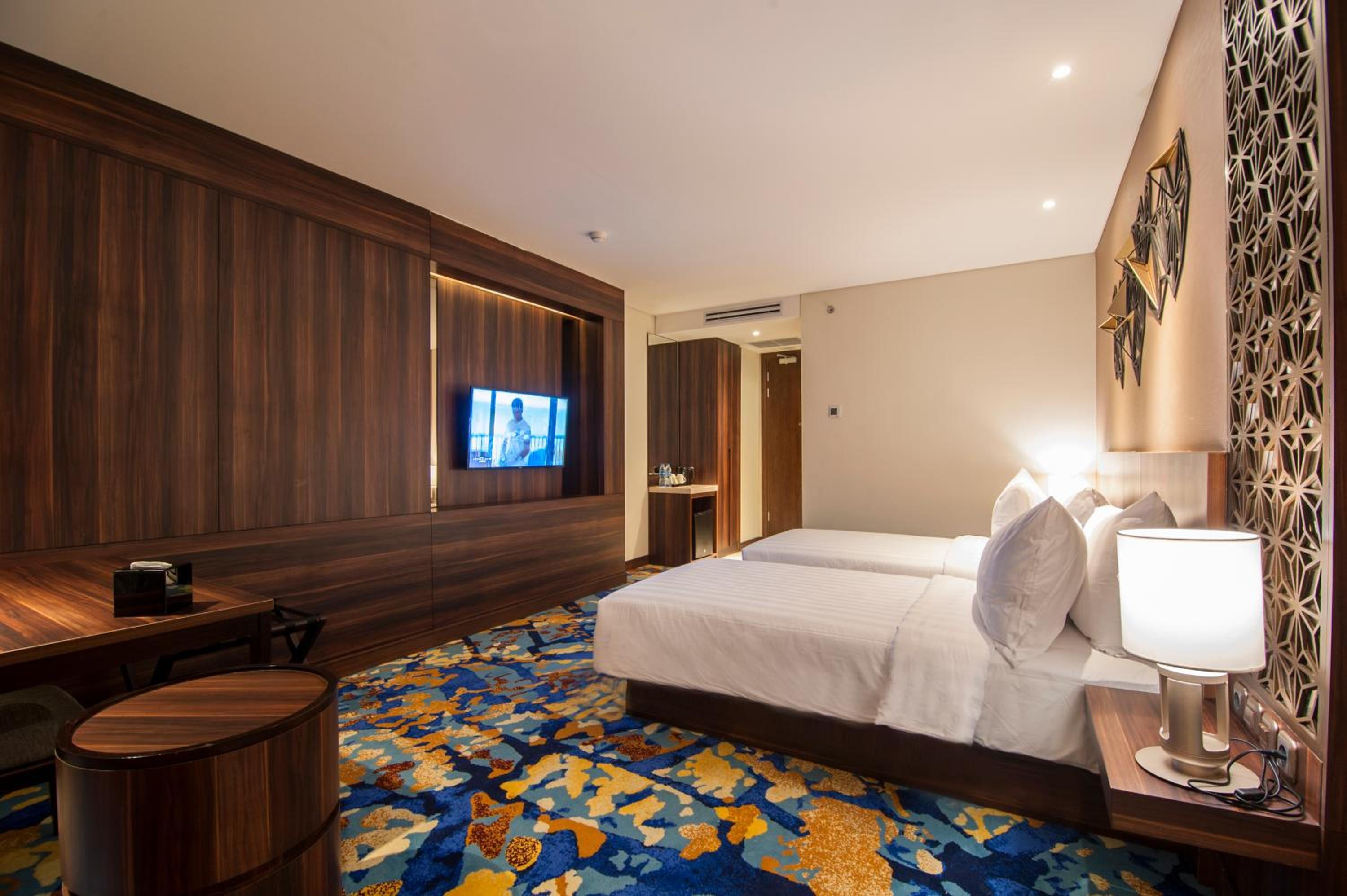 Relax in our air-conditioned rooms featuring modern amenities like flat-screen TVs, safety deposit boxes, and luxurious private bathrooms with complimentary toiletries.