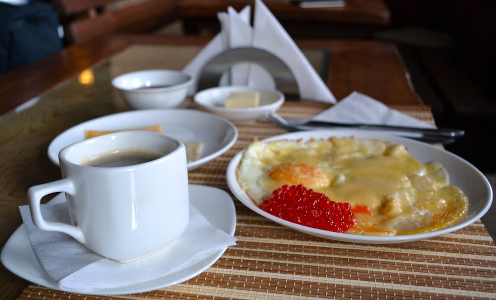 Breakfast: cooked breakfast is included and you have the choice of eggs, porridge or caviar.