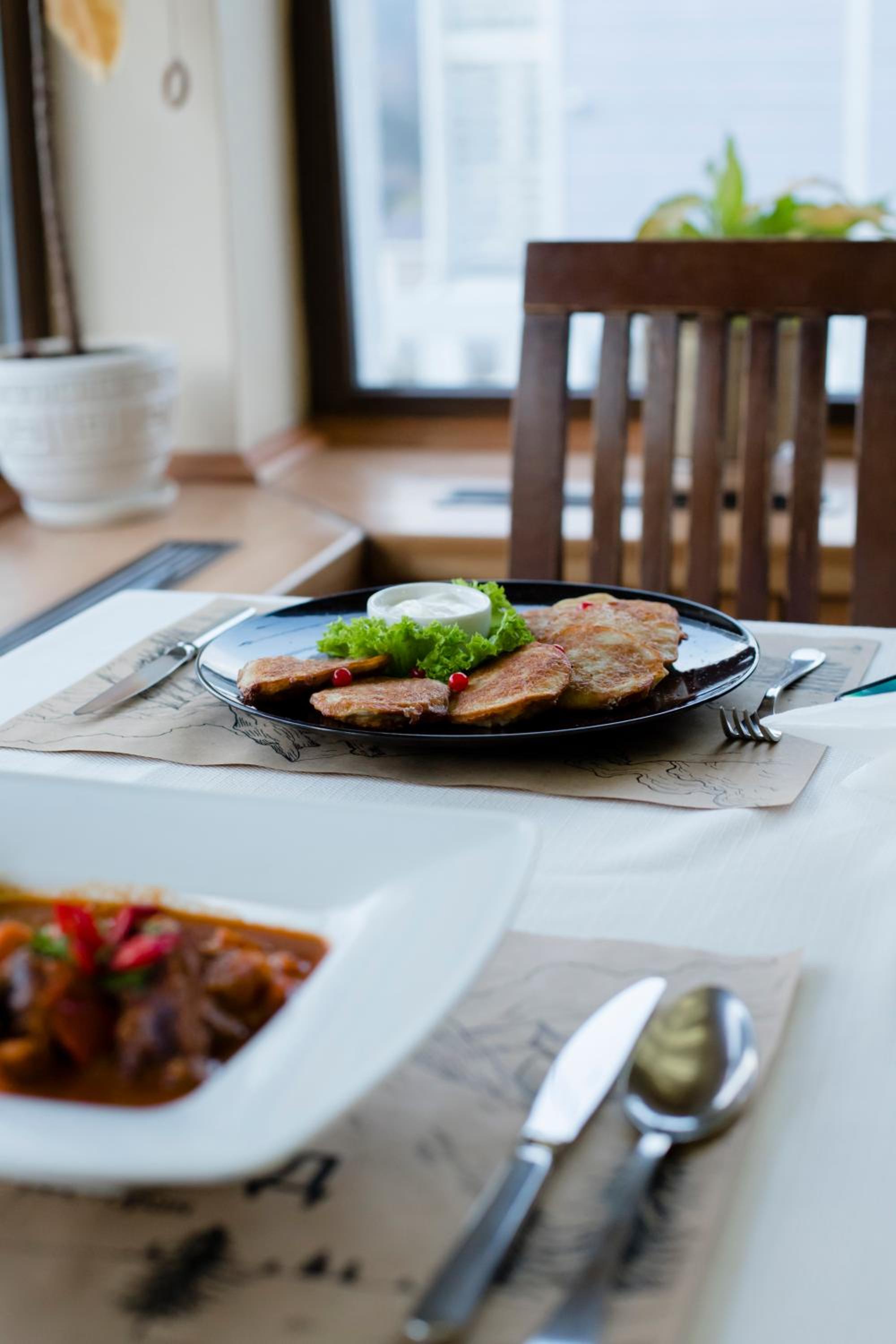 Краєвид з номеру прекрасний😍дуже приємно прокидатися і бачити таку красу)якщо обирати готель вище від дороги, варто сплатити трішки більше за номер з балконом та видом який відкривається)смачні сніданки, затишний ресторан)