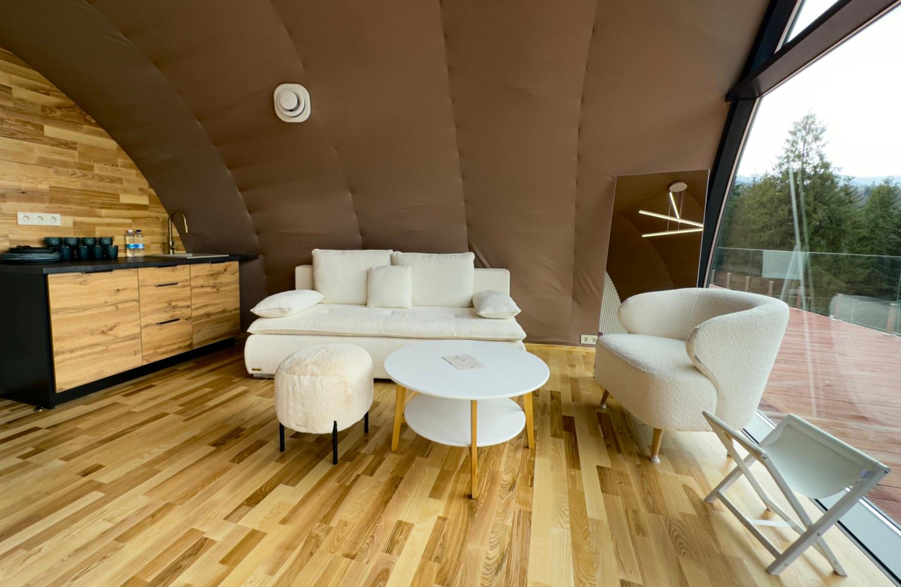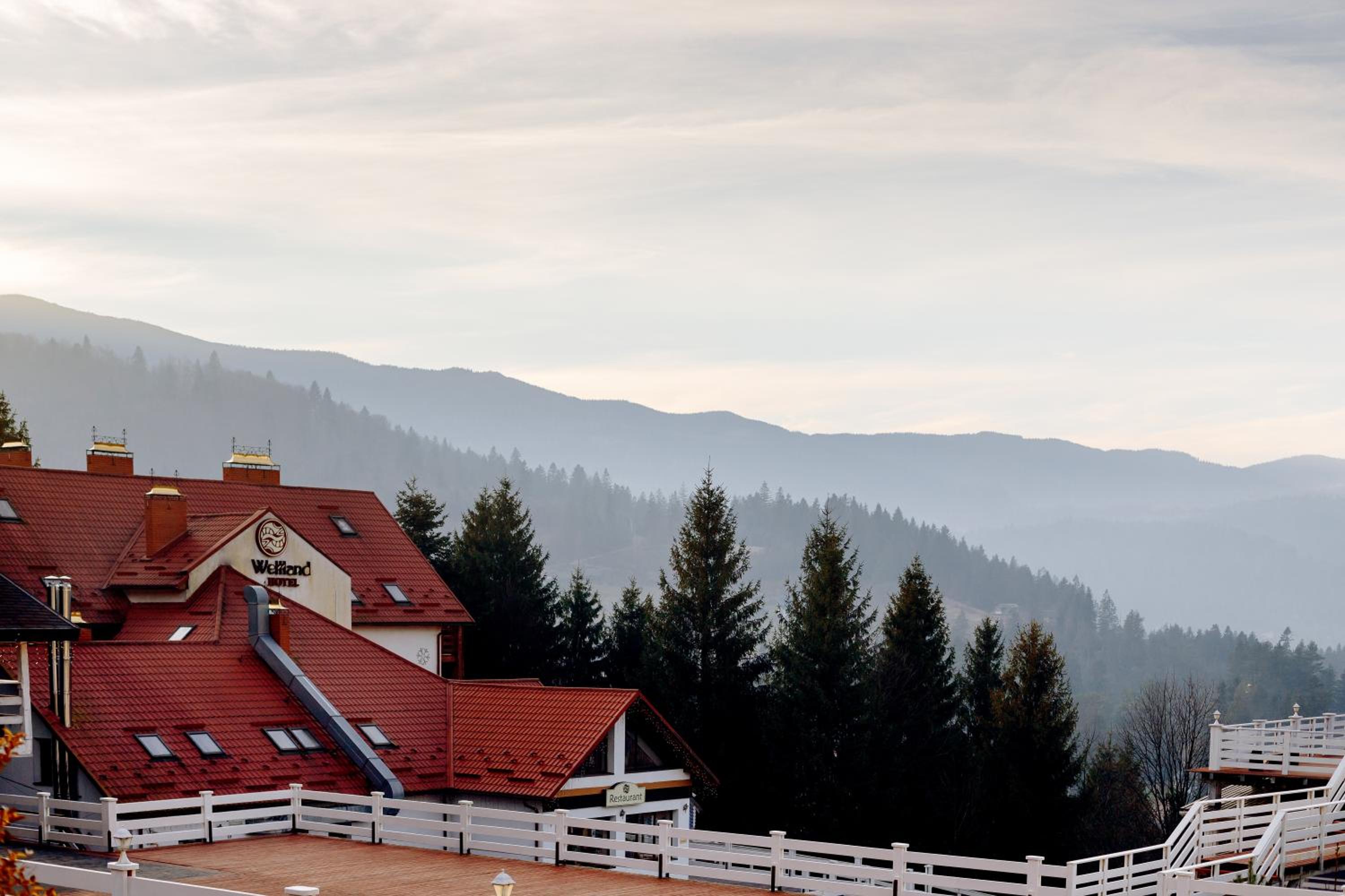 Indulge in European and Ukrainian cuisine at Wellland Restaurant while enjoying panoramic mountain views. After a day of exploring, unwind at the lounge bar or by the fireplace hall, adding a touch of warmth to your mountain retreat experience.