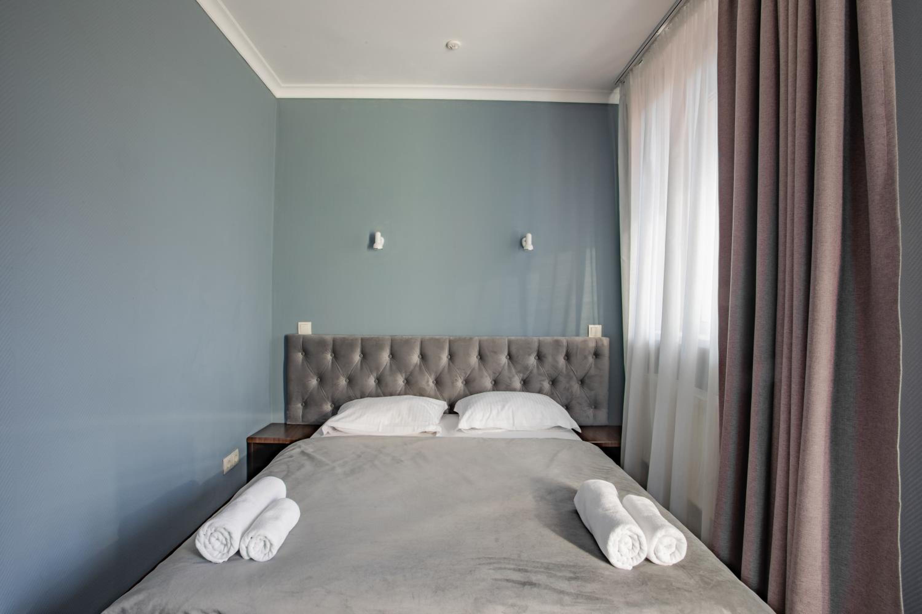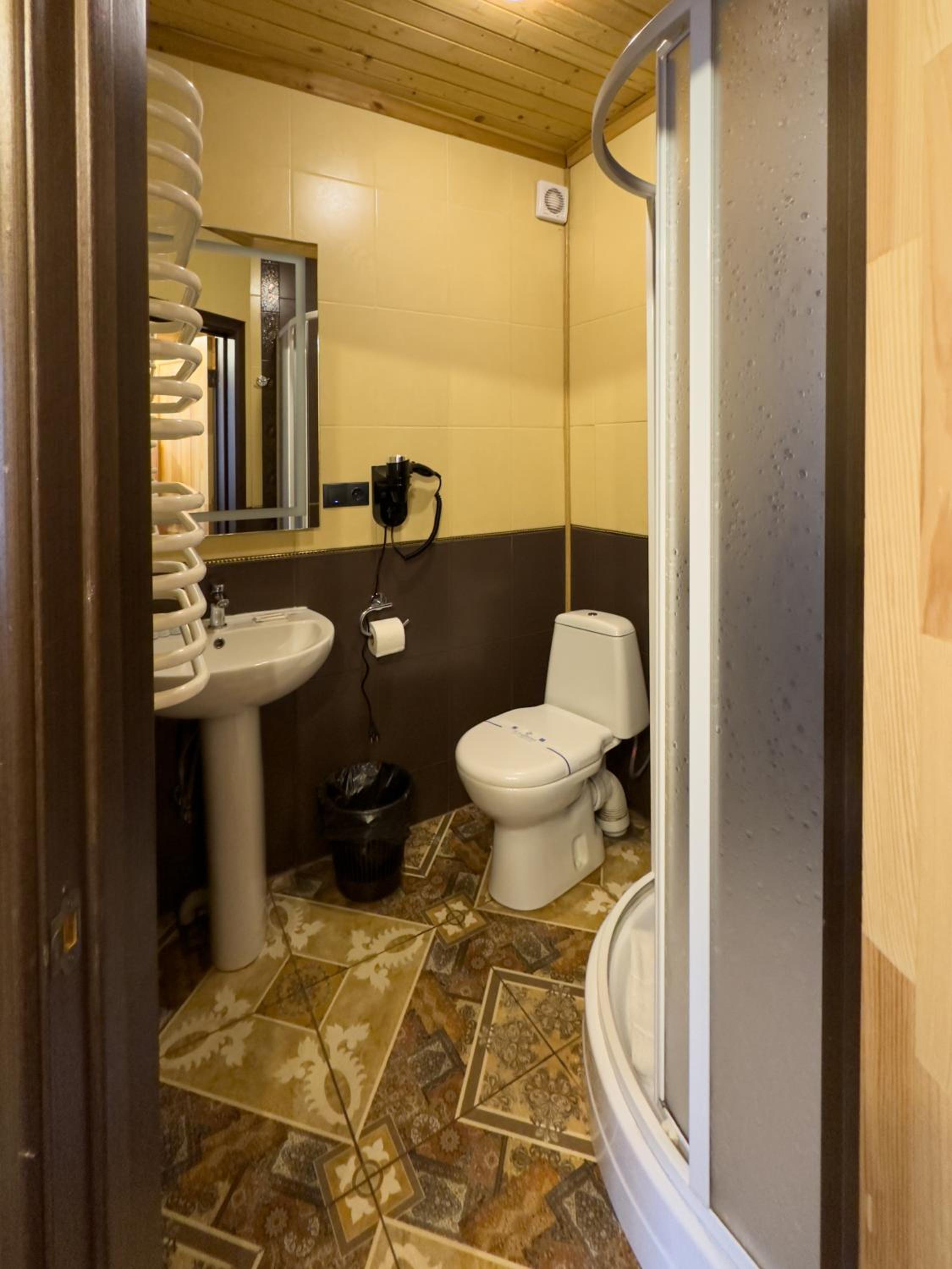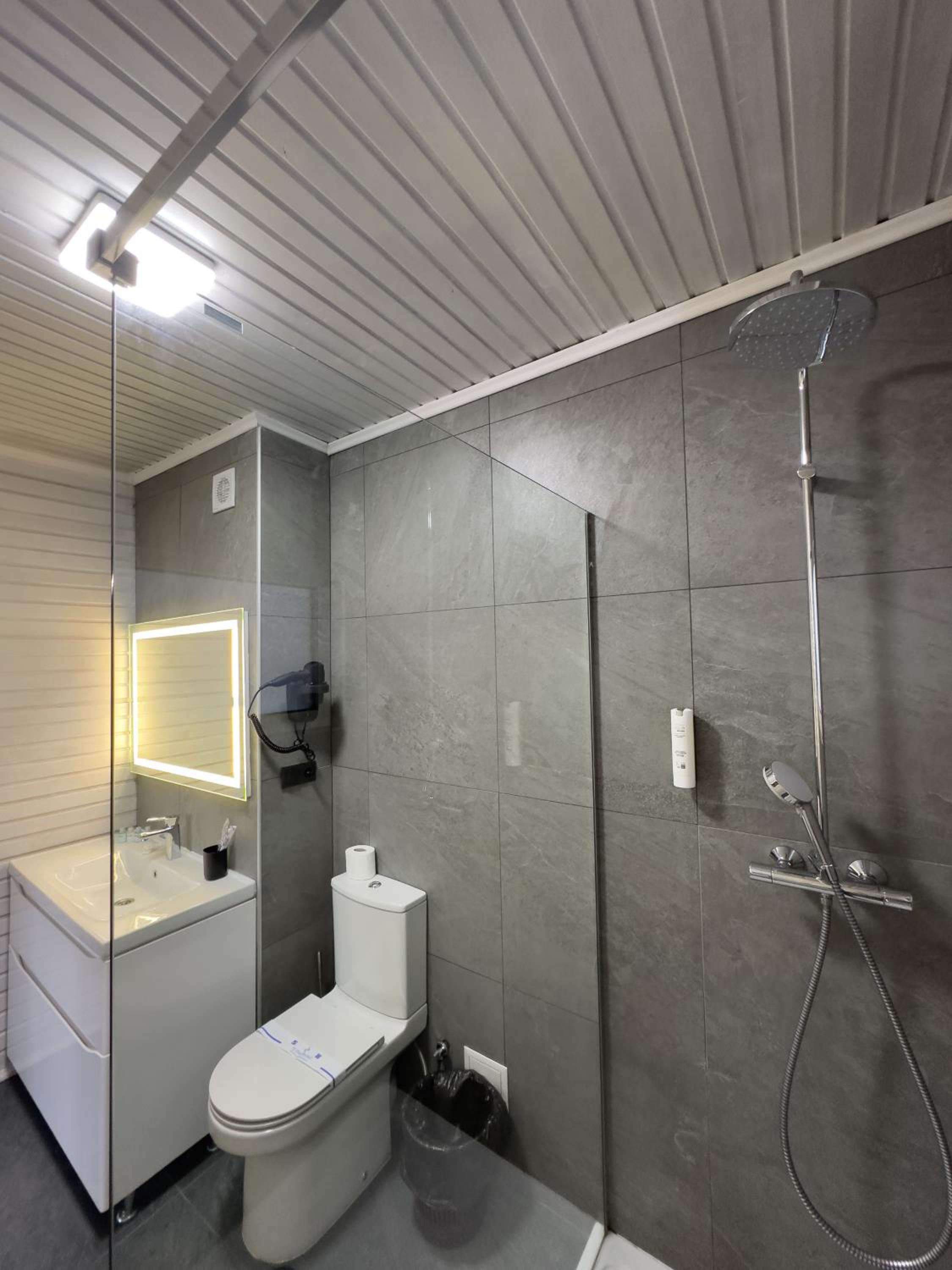 Когда заселялись, в санузле на полу было много волос. Мы приехали поздно, можно было убрать. Когда купаешься, с кабинки на пол течет вода и капало с бойлера на пол. Из-за этого в номере был запах сырости.