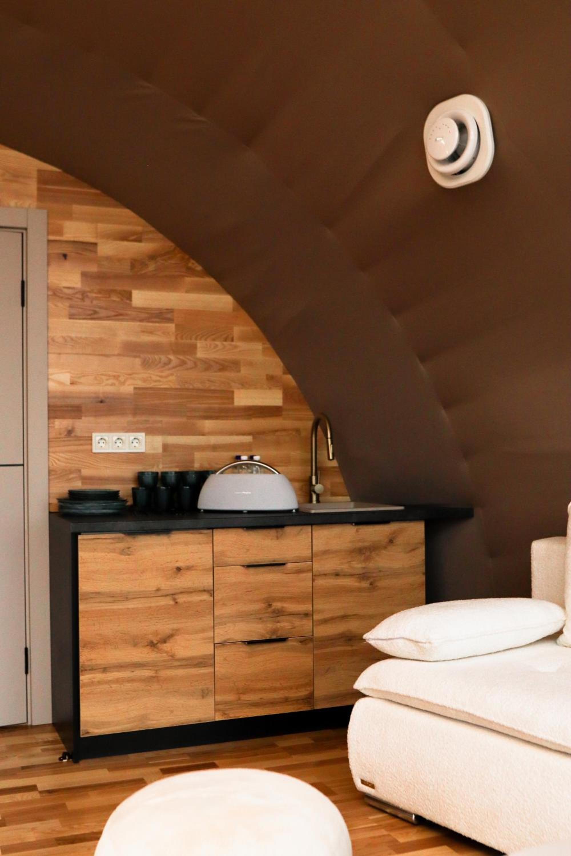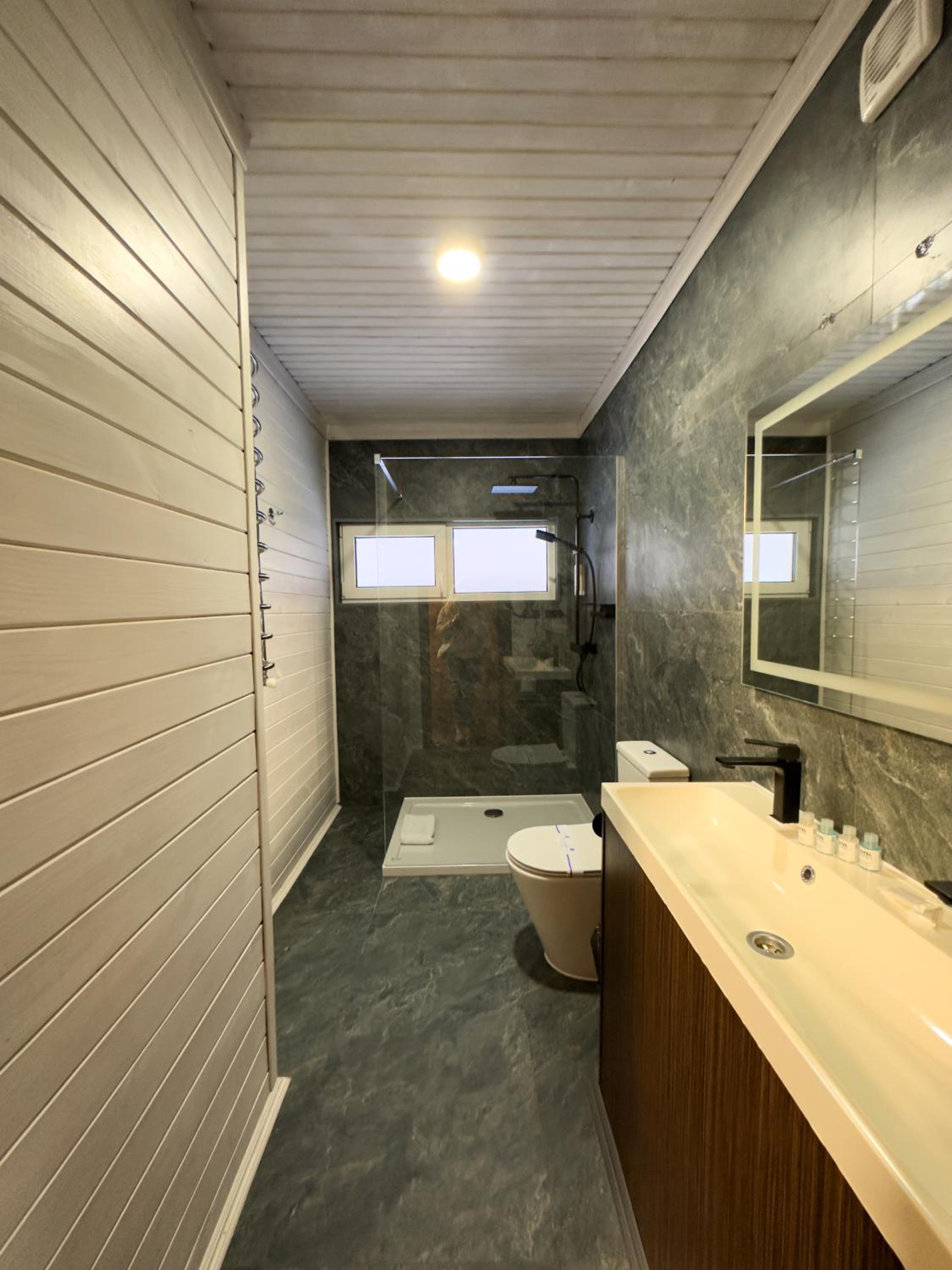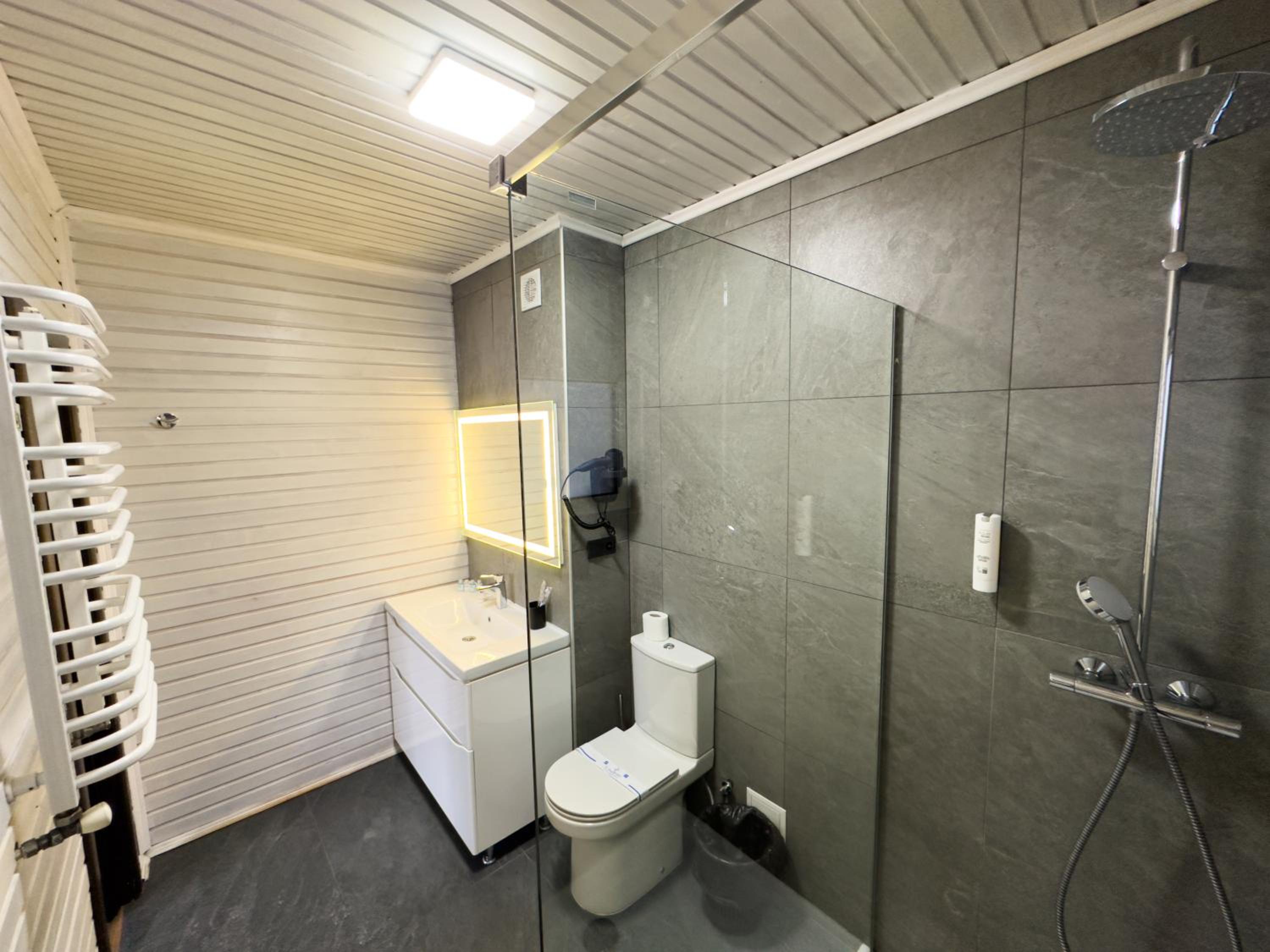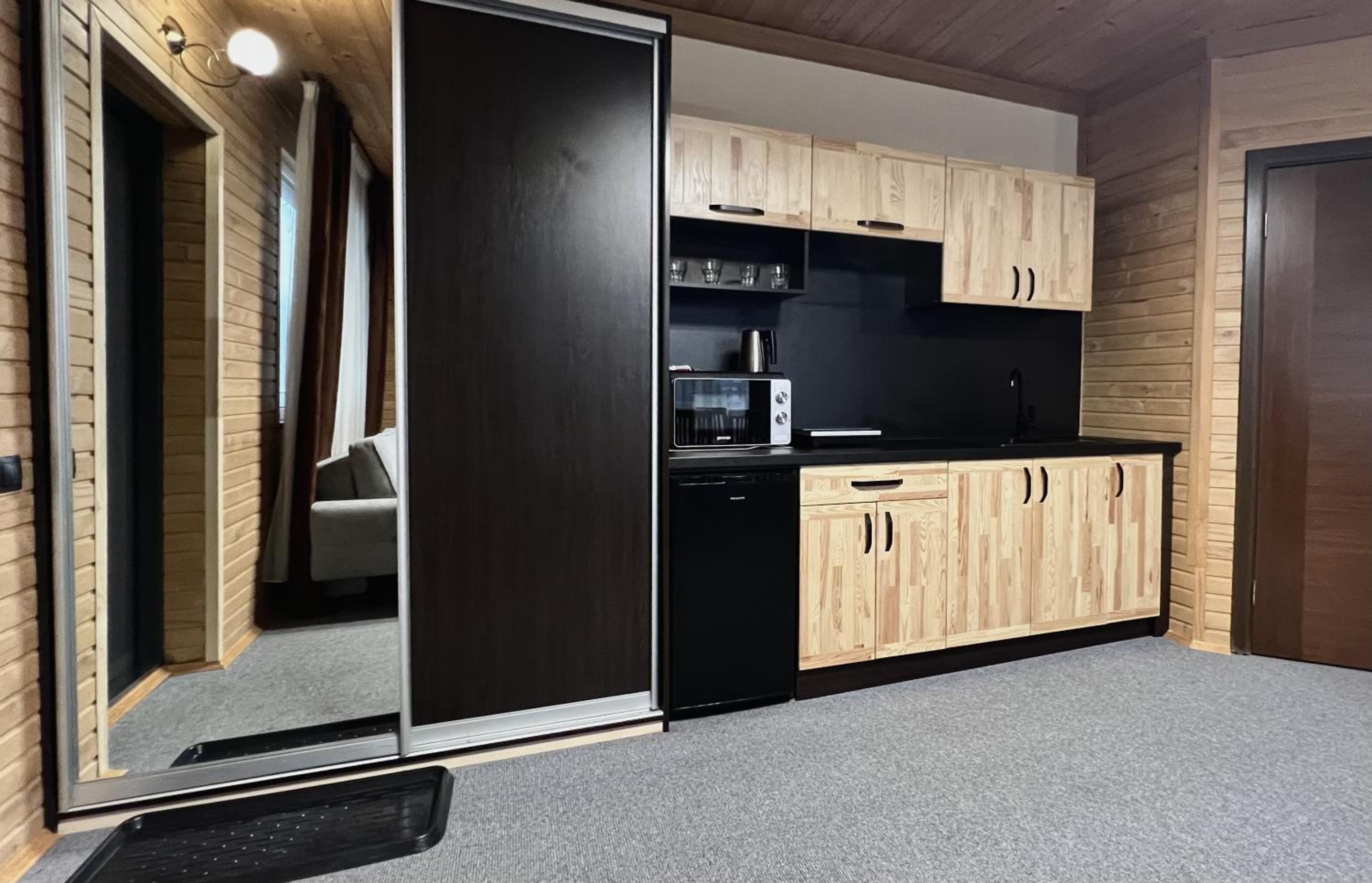 Когда заселялись, в санузле на полу было много волос. Мы приехали поздно, можно было убрать. Когда купаешься, с кабинки на пол течет вода и капало с бойлера на пол. Из-за этого в номере был запах сырости.