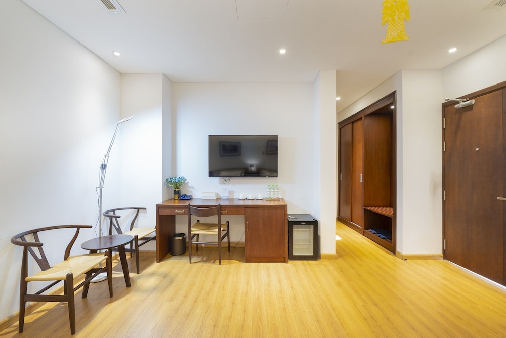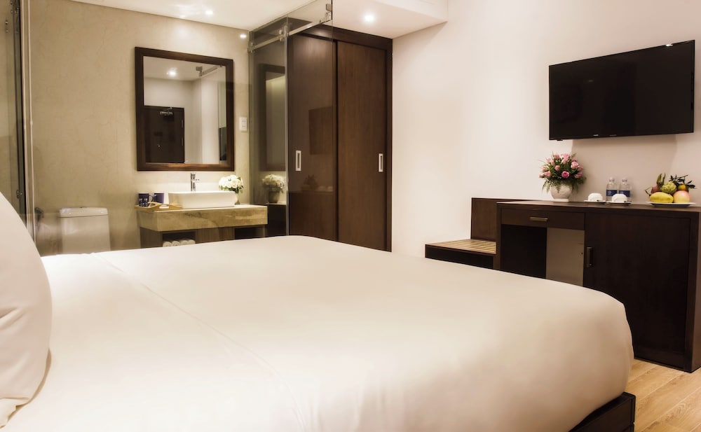 The staff were all very kind and were very attentive. I had been looking at this property for quite some time as I usually stay at the larger chain facilities in Danang. I thought the property and suite were quite cute and the location was close to one of my favorite restaurants madame Lan. There were some slight drawbacks.. The hot water in the shower consistently lasted no more than 5 minutes, the French doors would not lock out to my balcony area and the closet safe malfunctioned twice causing me to have the manager come up twice to fix it. (At a very late hour) I will say I really enjoyed the staff and they were very very sweet and attentive. Because of this alone I will consider going back for one or two nights again to give them another shot. Super lovely people.
