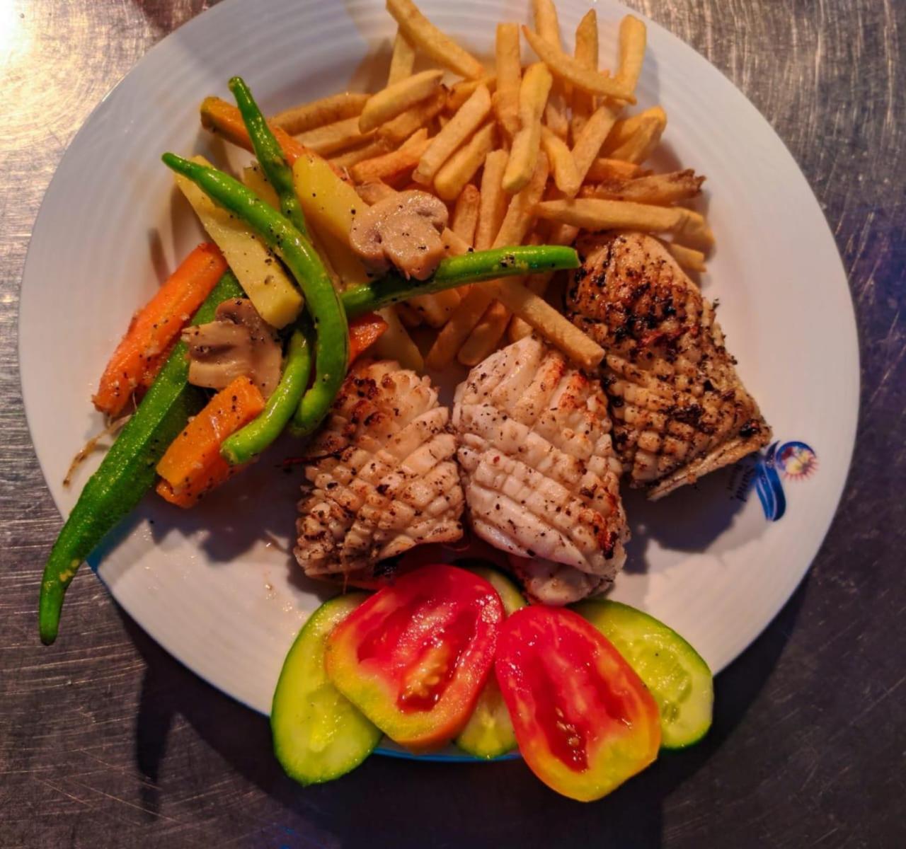 Das Strandrestaurant war schön mit einem sehr guten Essen. Dort gab es auch ein tolles Frühstück.
