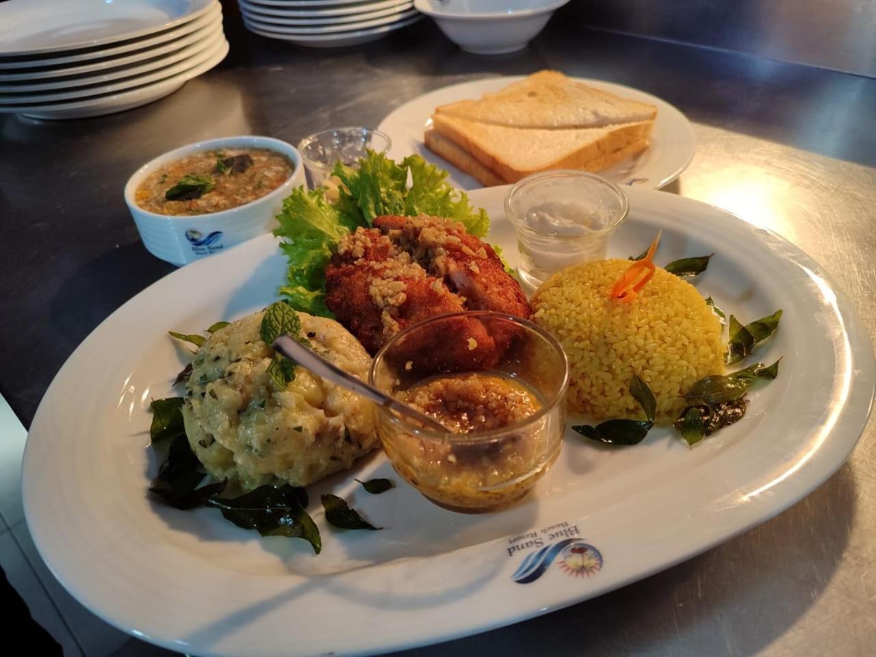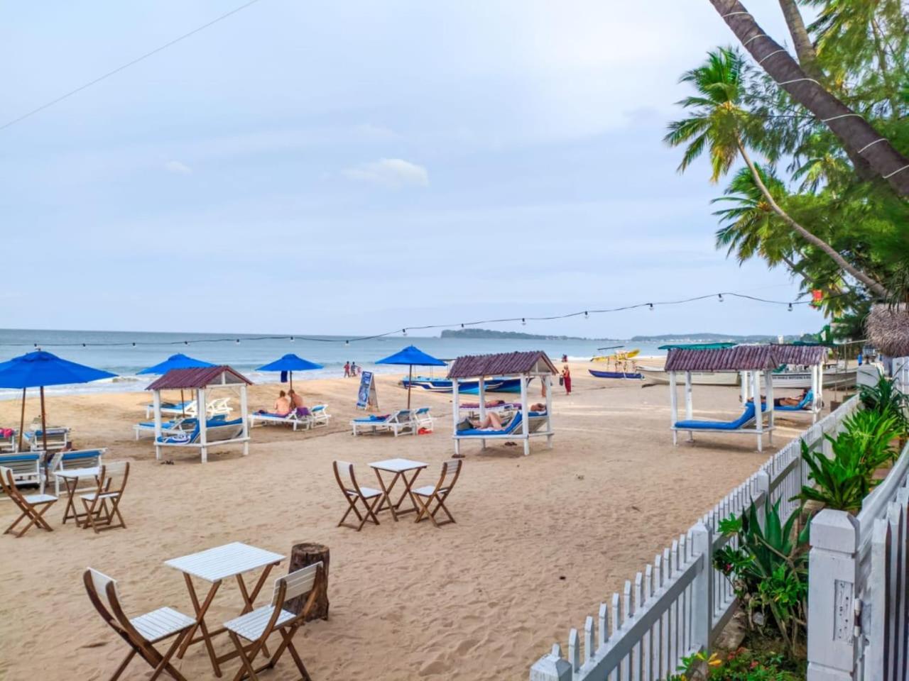 Location was perfect on the beach. Beachbeds with umbrellas. Room was clean, bed good,shower, good ac, wifi , staff very friendly. Breakfast looking out over the see. Breakfast was big, coffee or tea, eggs the way you like with beans, tomatoes, sausages, patatoes, toast butter jam and all kind of pastries. Sri Lankan cocosbread with chutney and a dessert choice of pancakes or waterbuffelo yogurt with honey. The restaurant also serves a great curry rice. Good cocktail at night like a killer negroni.