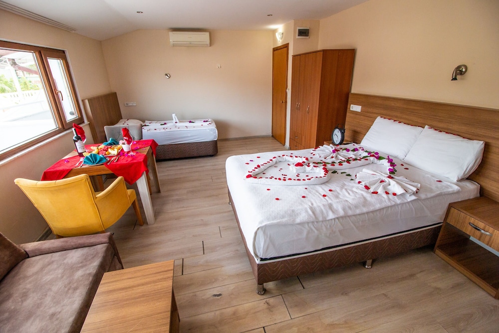 Eşimle 2 gün kaldık. Aileye uygun bir otel. Aydınlık ve güzel bir oda verdiler. Resepsiyondaki arkadaşlar gayet ilgiliydi. Yastık çarşaflar vs temizdi gönül rahatlığıyla uyuduk. Banyonun hafif bakıma ihtiyacı var ama çok problem değil. Çevrede market büfe gayet yakın, plaja da 15 dakikada ulaşılıyor. Fiyat performans güzeldi. Tercih edilir.