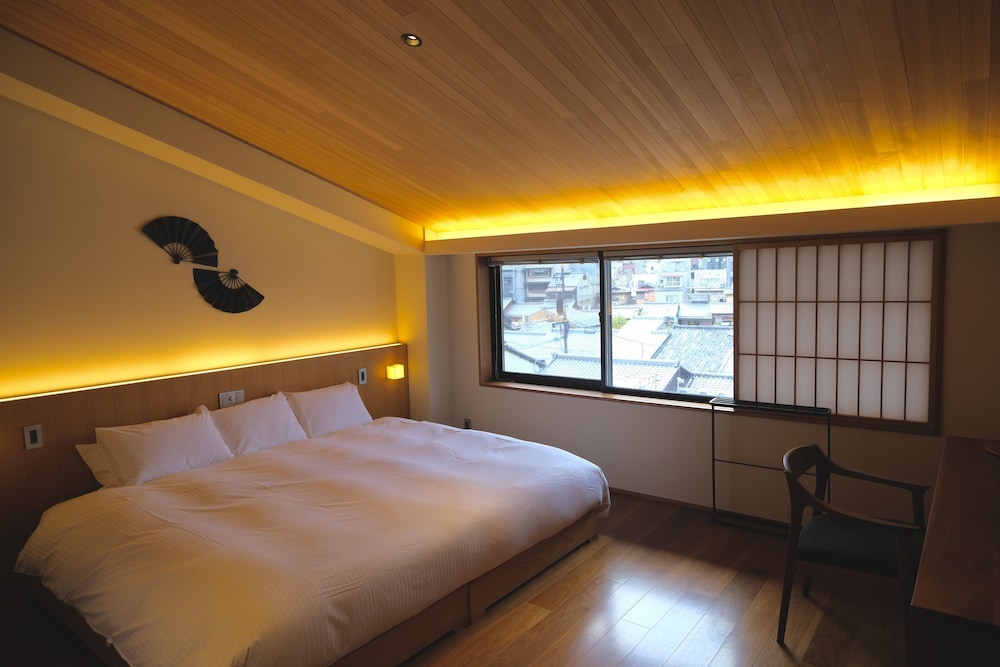 Beautiful boutique hotel on a lovely quiet street in the heart of Gion. Our room was on the 4th floor with a view over the rooftops of Kyoto- very charming. Decent size room for a small hotel. Staff was friendly- location just perfect.