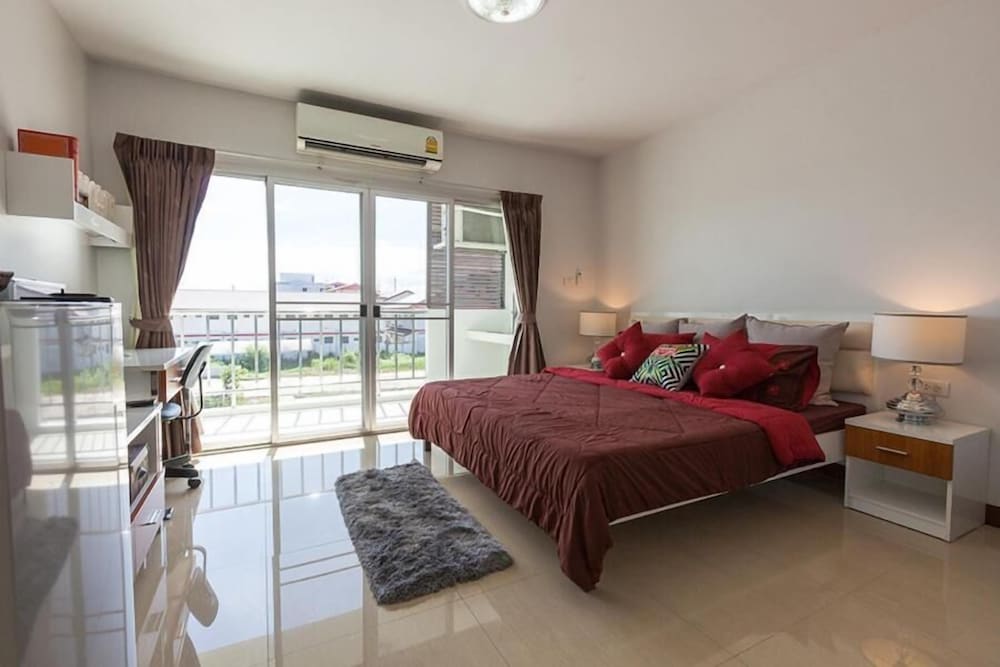 We broke a long road trip from Isan to Krabi here and stayed overnight just south of Bangkok. The 'hotel' is really set up more for long term residence. As such, it has some advantages like lots of closet and drawer and frig space which are usually missing from guest houses in Thailand. The on site manager was very friendly and the room was clean. No coffee or food, but both 7-11 and mini Big C are less than 50 meters from the property as is a local nightly market. Far enough off the highway to be quite but close enough to quickly get back on the road in the morning. Good parking too.